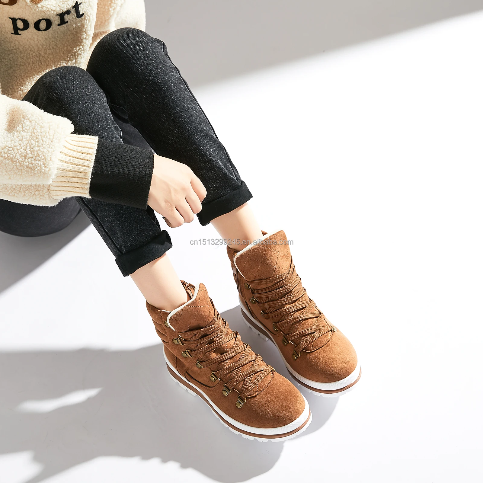New Design Winter Custom Logo Snow Ankle Boots Women Warm Zipper Anti-slip Thick Hiking Ankle Boots Winter Shoes
