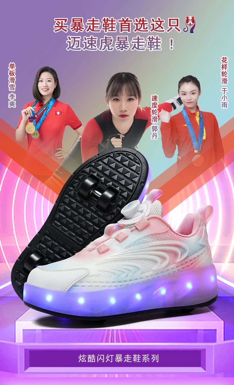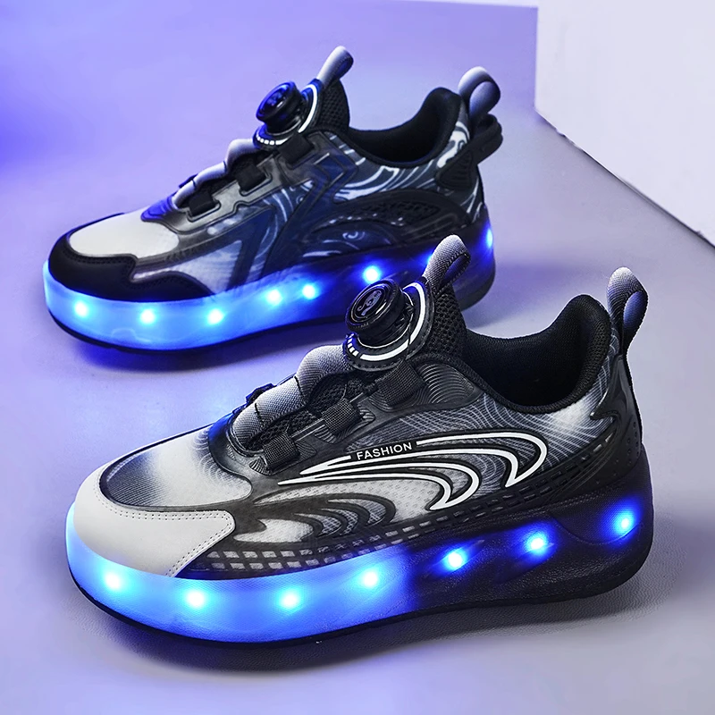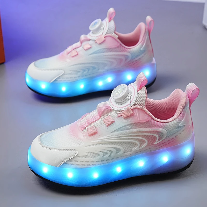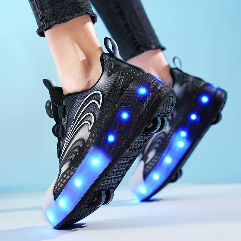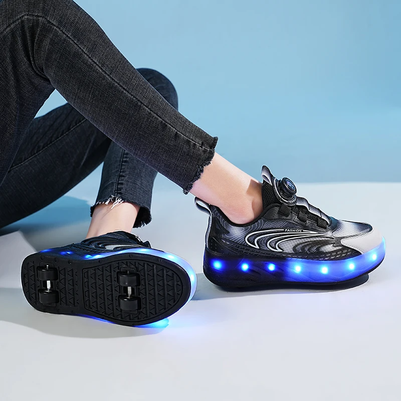 Outdoor Sports Children Led Charging Zapatos Con Light Up Flash Skate Roller Shoes With 4 Big Wheels Usb Rechargeable