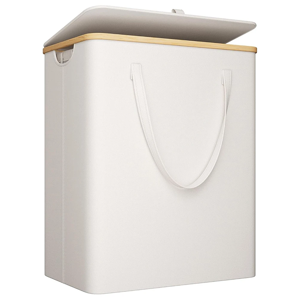 Large Capacity Bamboo Hoop Laundry Basket with Lid 170L 3 Section Collapsible Hamper