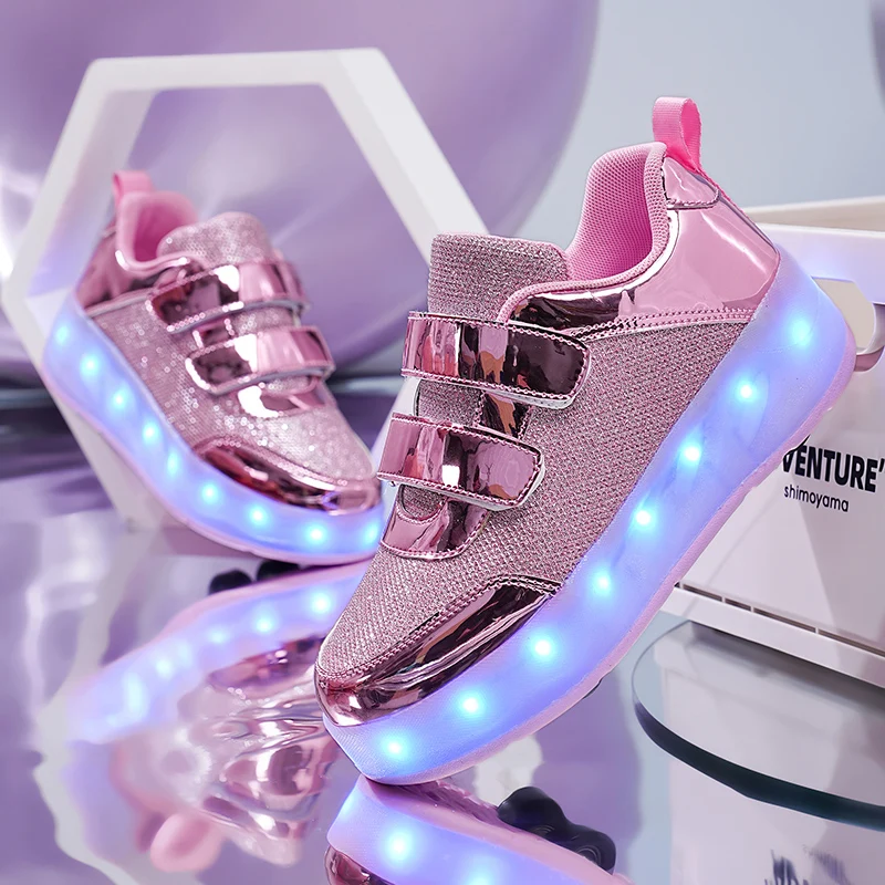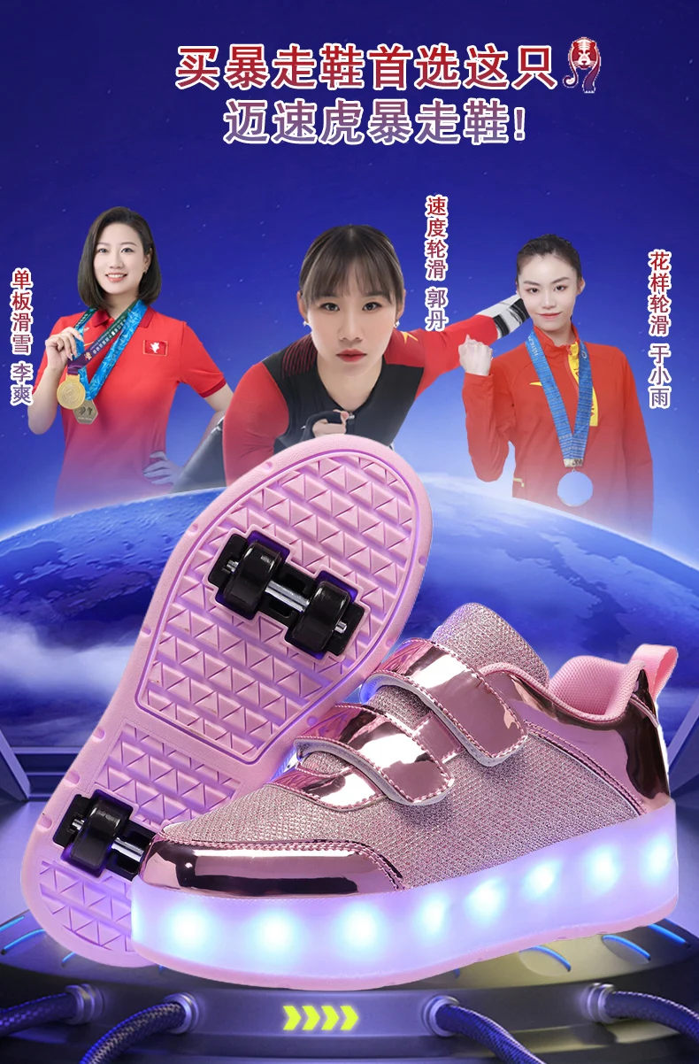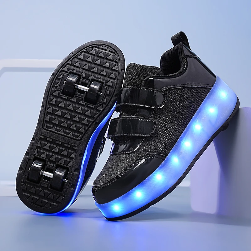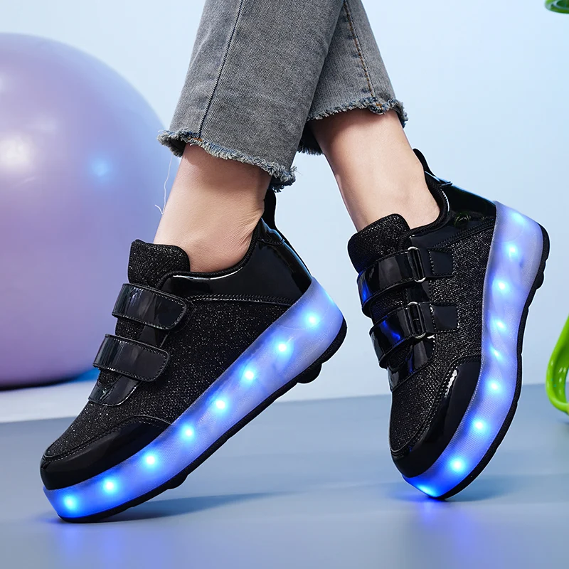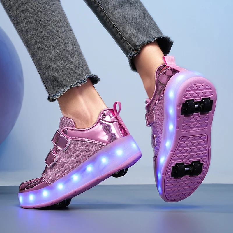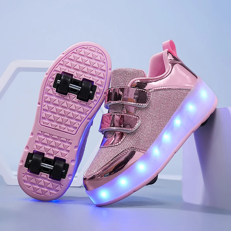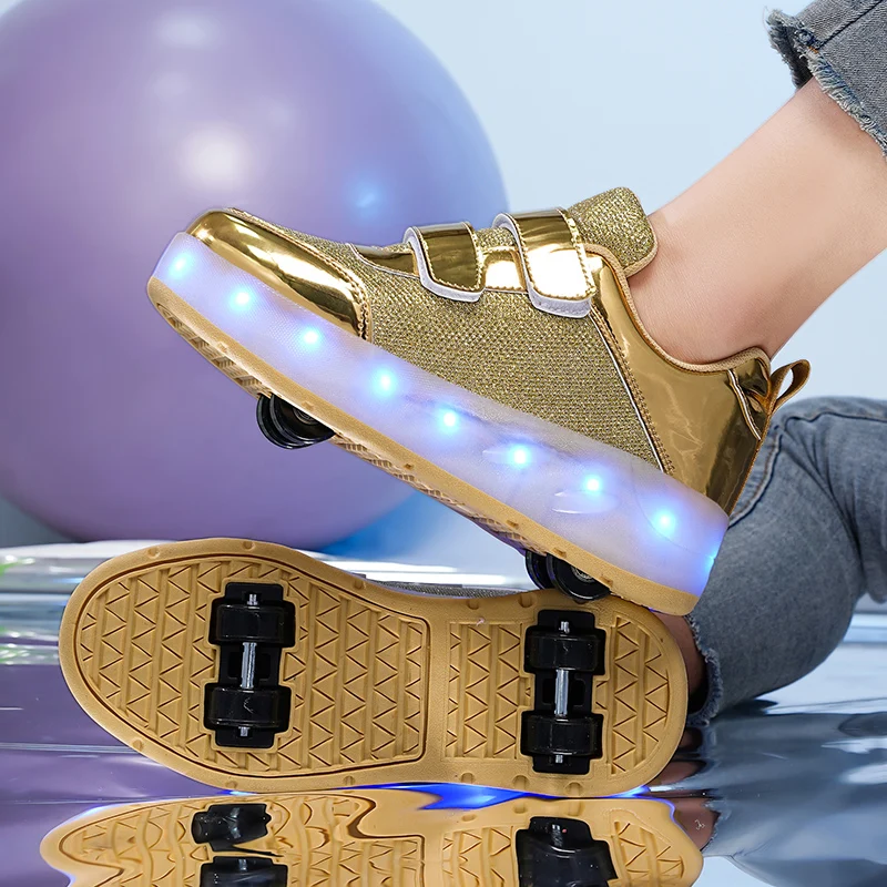 Fashion Unisex Wheel Retractable Four Wheels Children Roller Skating Shoes Flashing Roller Shoes LED Light Up Sneakers