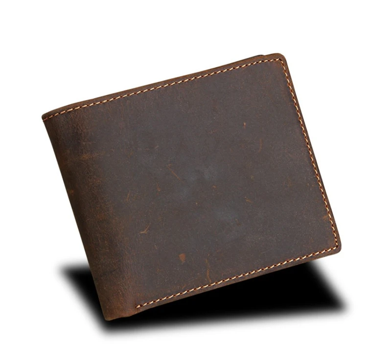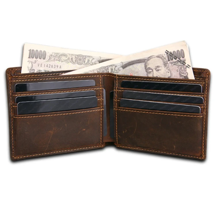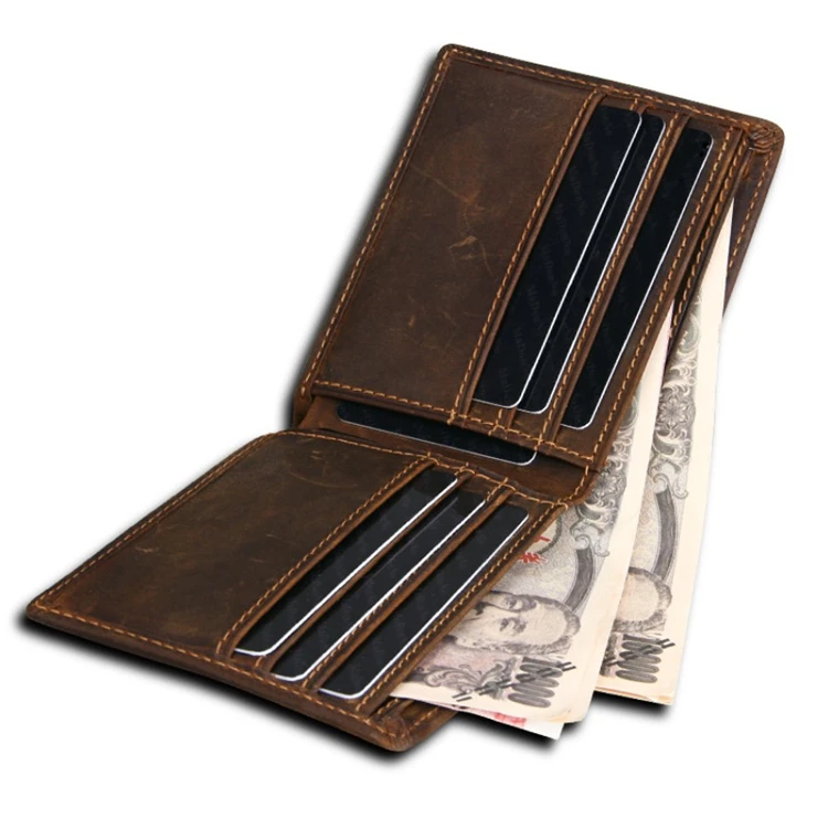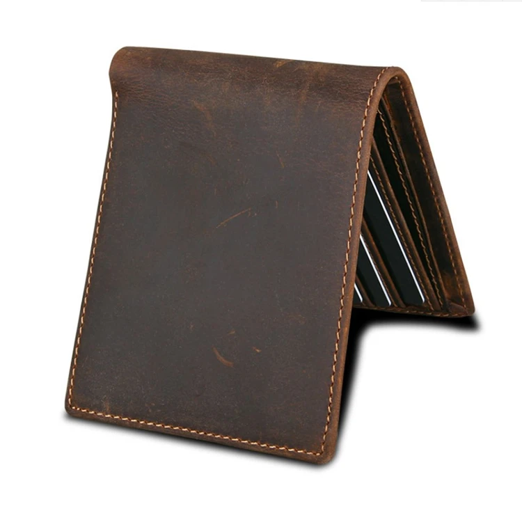 Eco-friendly Natural Slim RFID Blocking Card Holder Genuine Leather Men's Vintage Style Wallet Custom Logo Waterproof Wholesale
