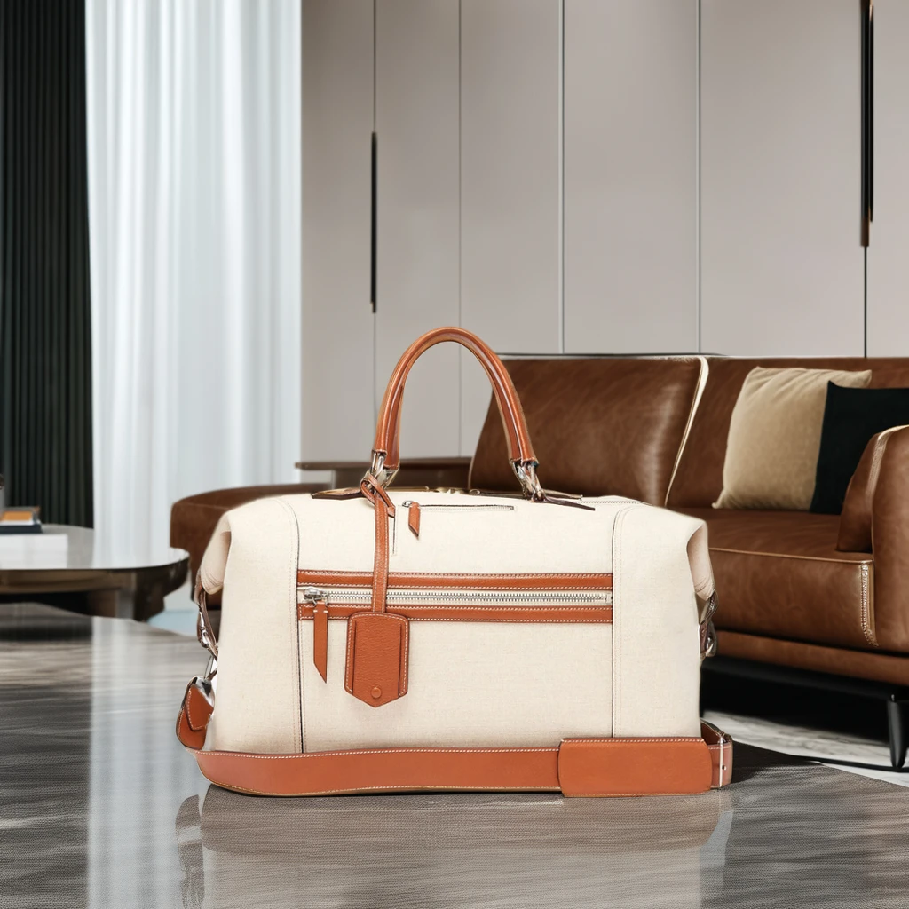 New Lightweight canvas vegan leather weekender bag trendy ladies waterproof wholesale overnight bag travel weekend bags women