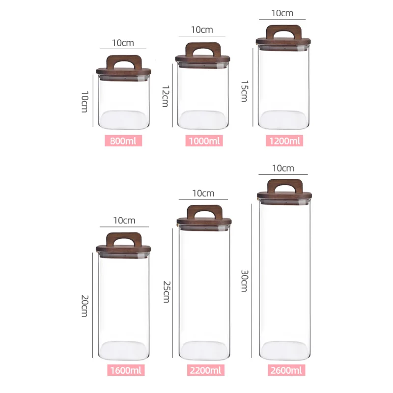 China Glass Manufacturer High borosilicate glass cookie/rice/sugar/coffee/spice storage jar canister with Acacia Lid