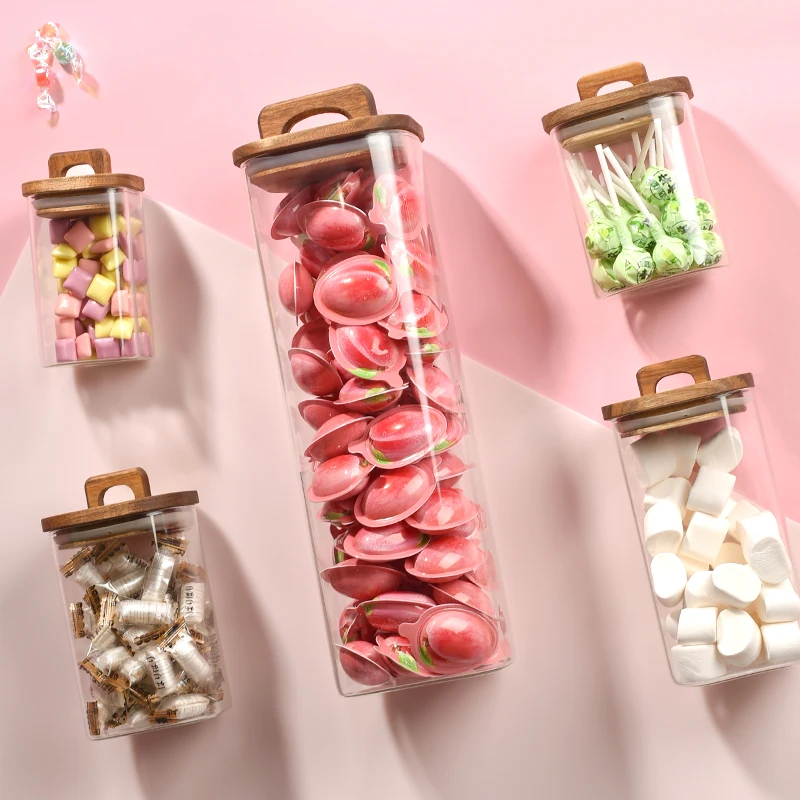 Factory price airtight sealed clear borosilicate glass cookie/rice/sugar/coffee Bean /spice storage jar with Nature Acacia Lid