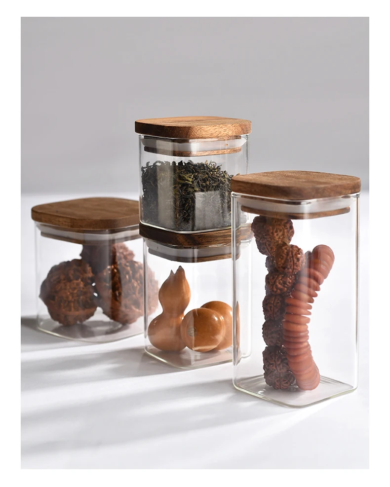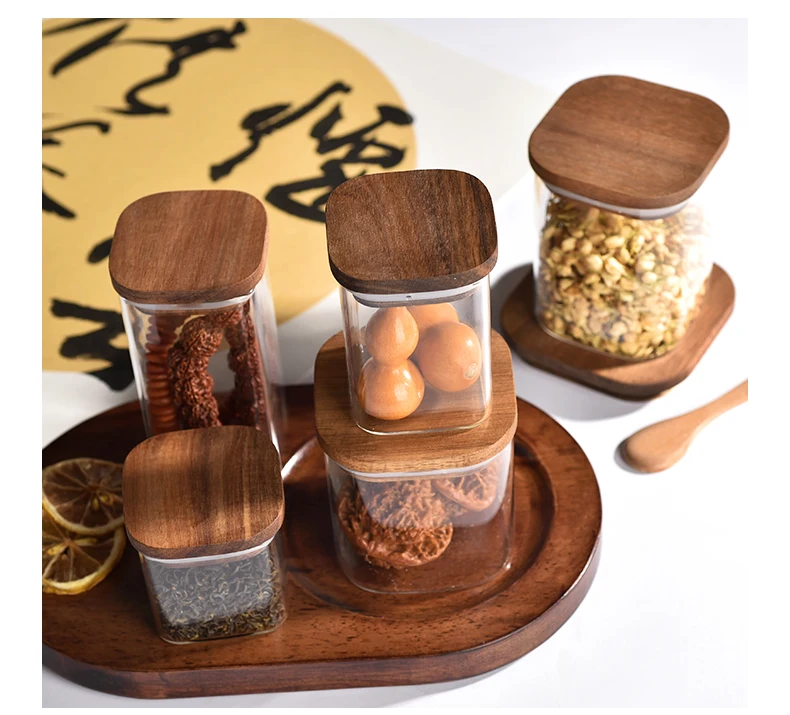 15 years factory 150ml-2.6L capacity heat and cold-resistant high borosilicate glass bottle spice container set with Acacia Lid