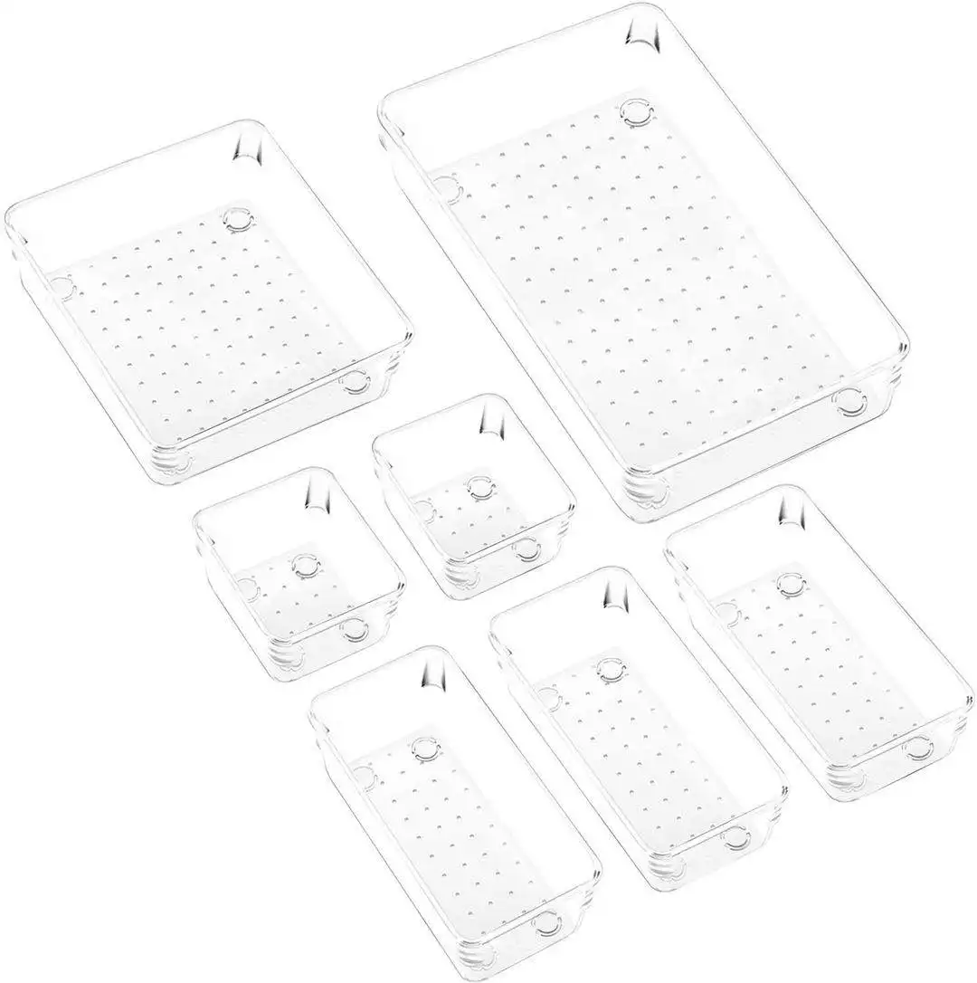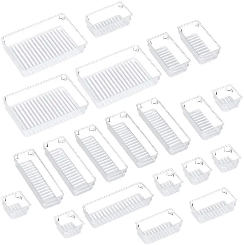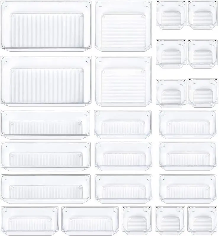 Product Name | Drawer Organizer with Non-Slip Silicone Pads, 5-Size Clear Desk Drawer Organizer Trays Storage Tray for Makeup, Jewelries,Utensils in Bedroom Dresser, Office and Kitchen(12 PCS) |