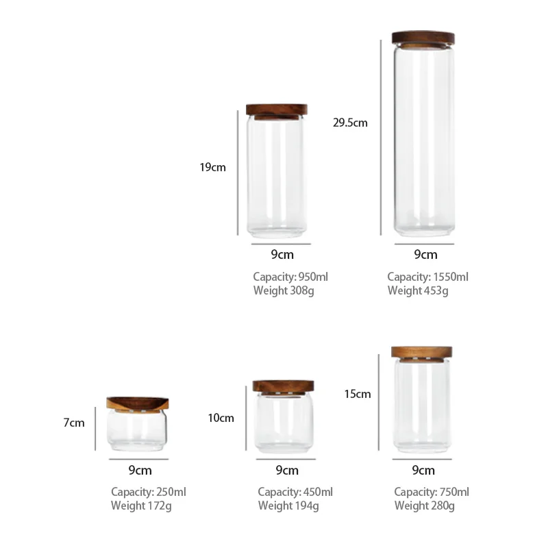 High Transparent Borosilicate Glass Kitchen Storage Glass Jar Set Glass Bottle Spice Container Set With Airtight Sealing Lid