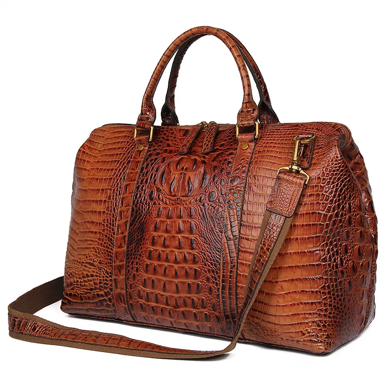 Custom Genuine Leather Bags Women Handbags Ladies Crocodile Grain Pattern Duffle Bags Unisex Leather Travel Bag for Men