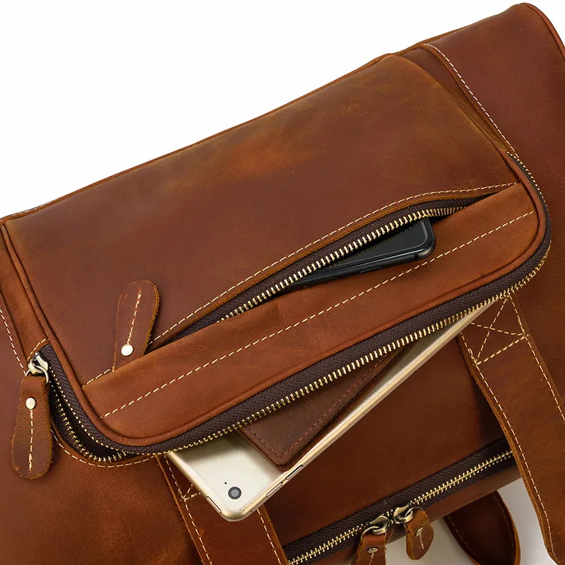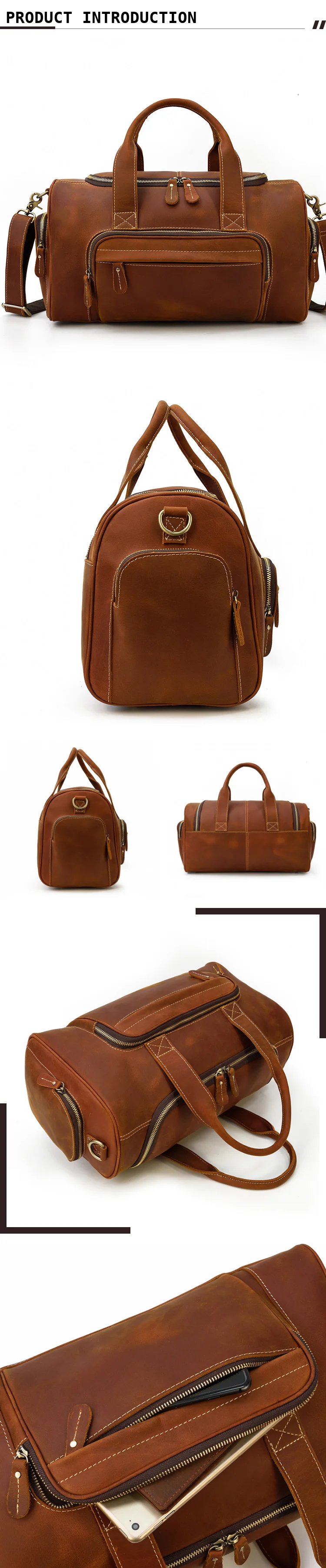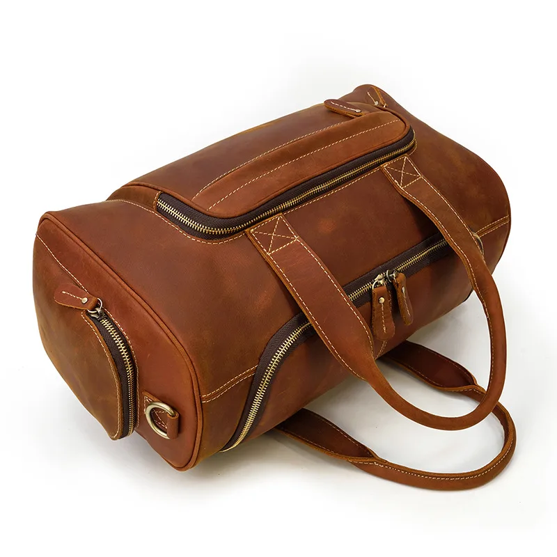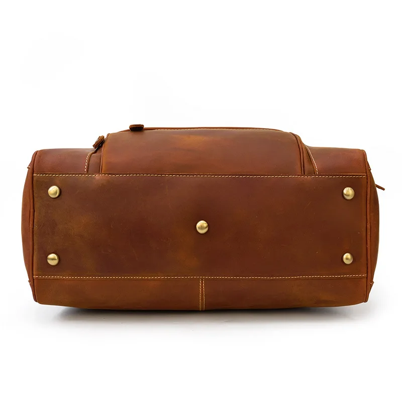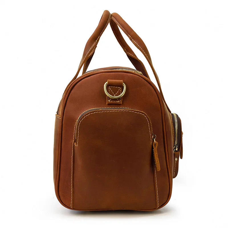 Custom Men Genuine Leather Travel Bags Luxury Single Shoulder Leather Duffle For Weekend Travel