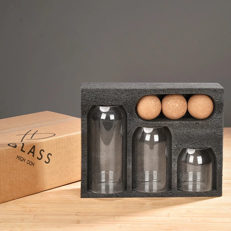 High Quality Food-Grade Lightweight and Sturdy High Borosilicate Glass Kitchen Sets of Food Spice Storage Jar with Cork Lid