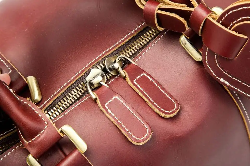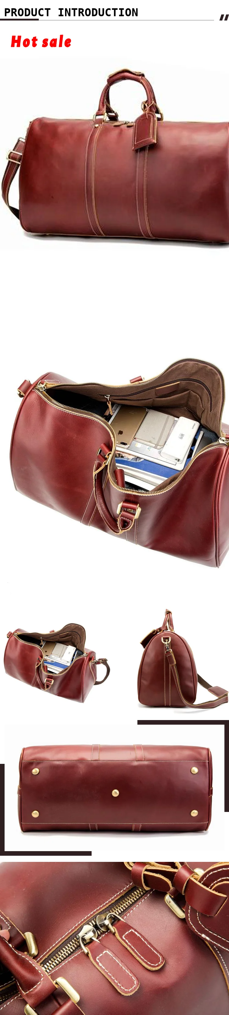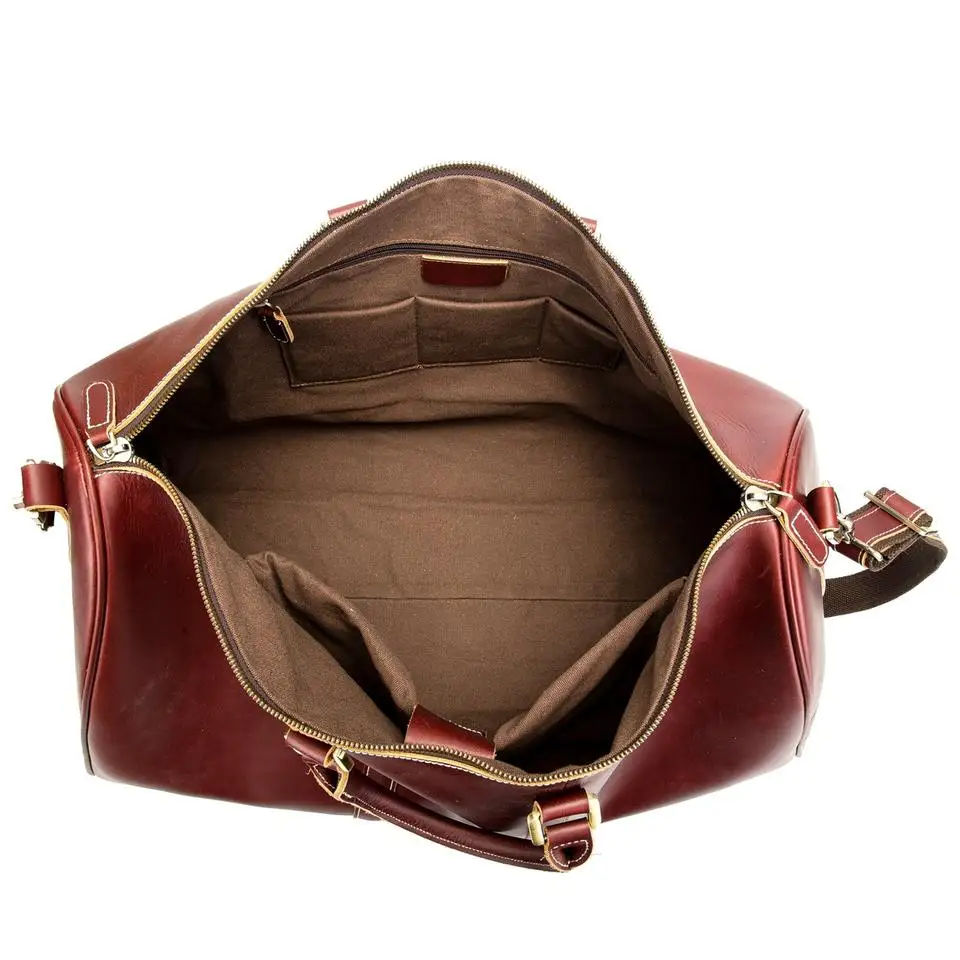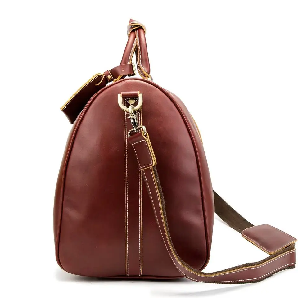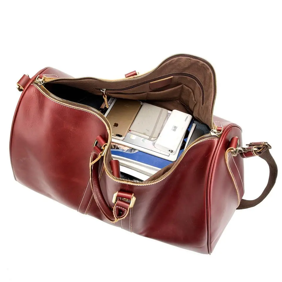 Leather Gym Sports Overnight Weekend Duffle Travel Tote Bags for Ladies Large Capacity Real Leather Holdall Burgundy Bag