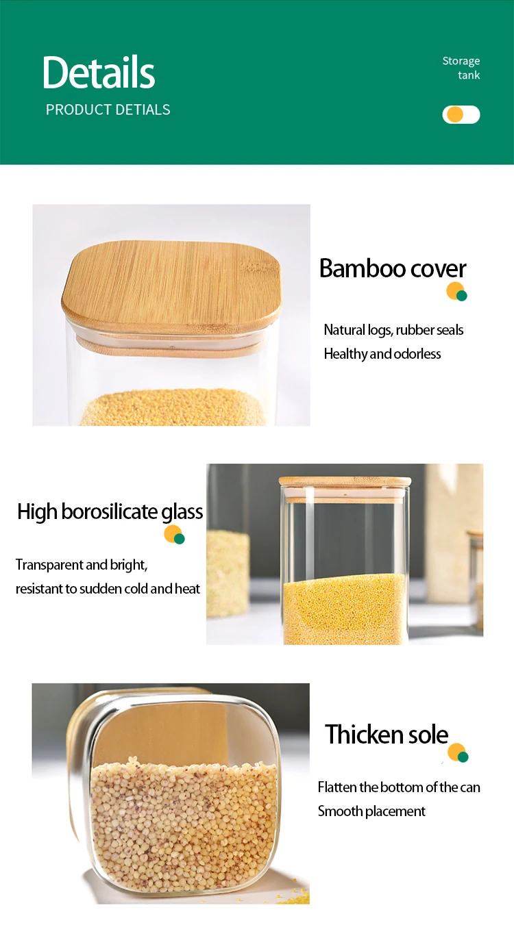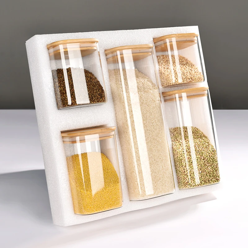 Crafted From High Borosilicate Glass Jar Storage Sets of Kitchen Food Storage Containers With Nature Bamboo Lid