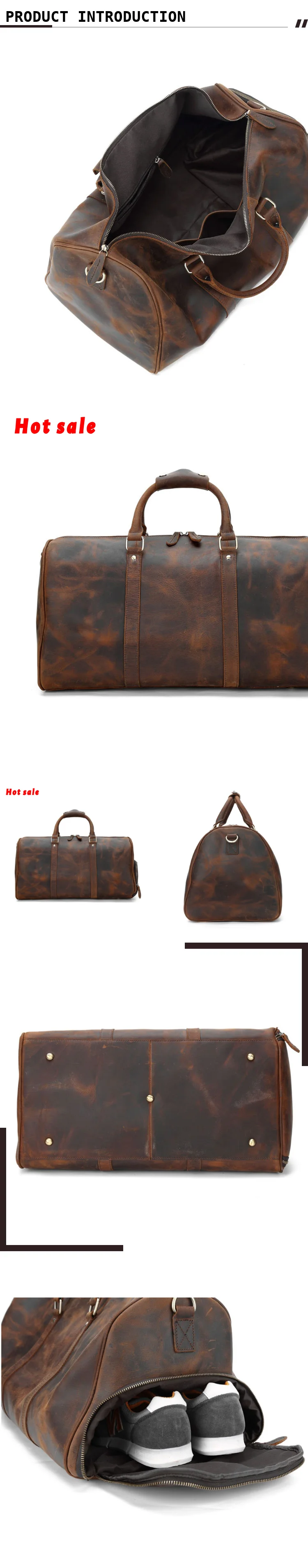 Crazy Horse Leather Travel Bag Cowhide Leather Duffle Bag Genuine Leather Luggage Weekender Bag With Shoes Pocket
