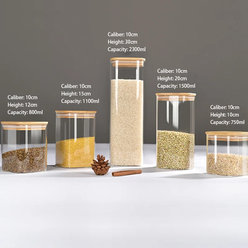 Multiple size options Vertical Rectangle Shape Glass Pantry Storage Containers sets of glass containers glass storage jars set