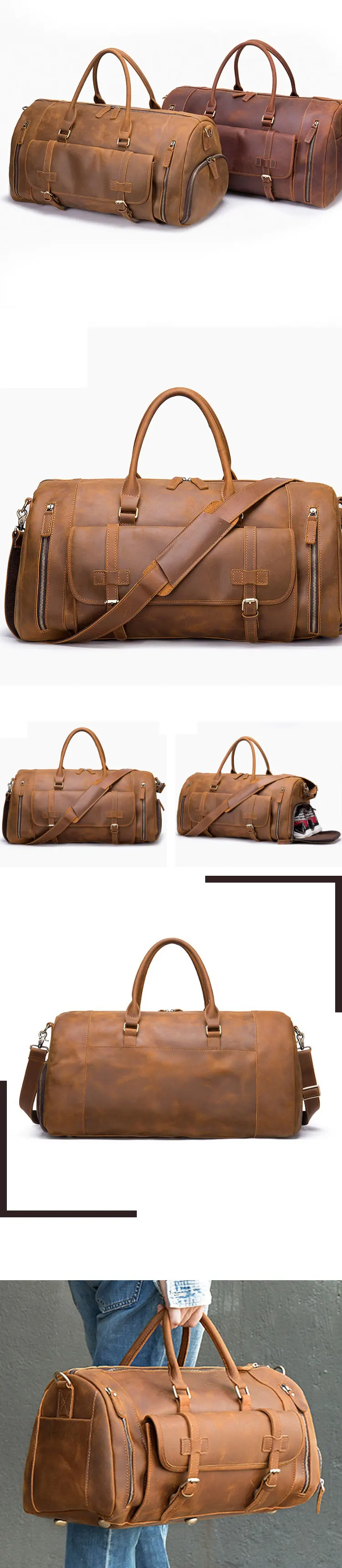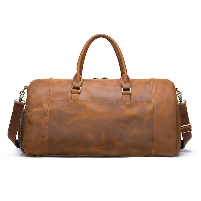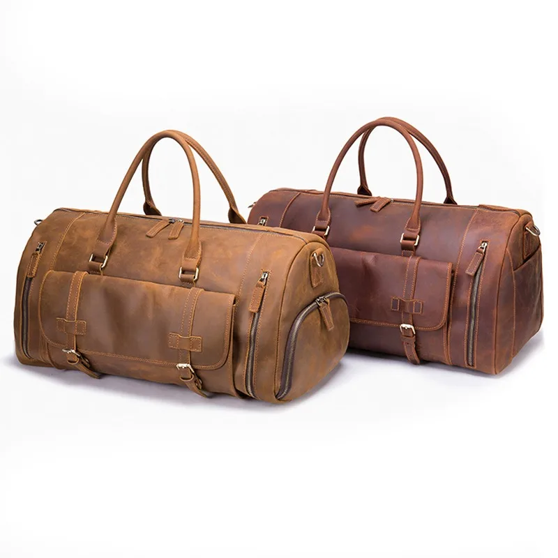 Vintage style crazy horse genuine cow leather duffel weekender travel duffle bags for men