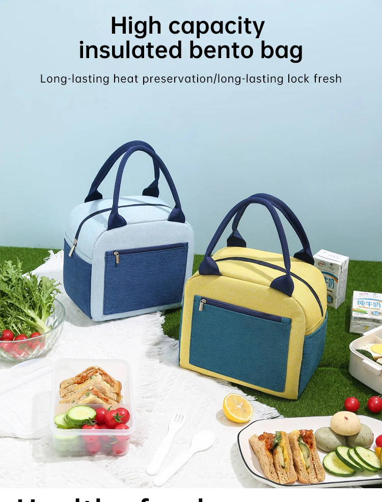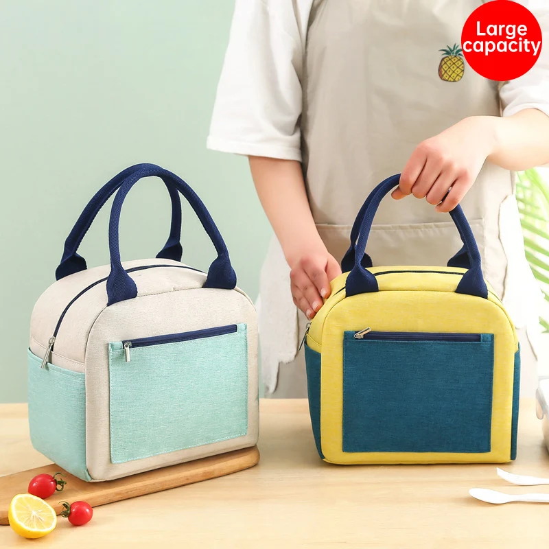 New Cationic Thickened Waterproof Student Office Workers Insulation Bento Bag Portable Color Blocking Picnic Bag