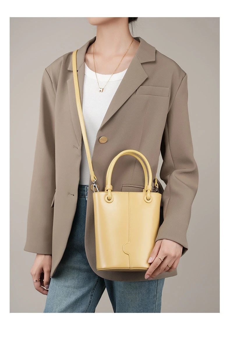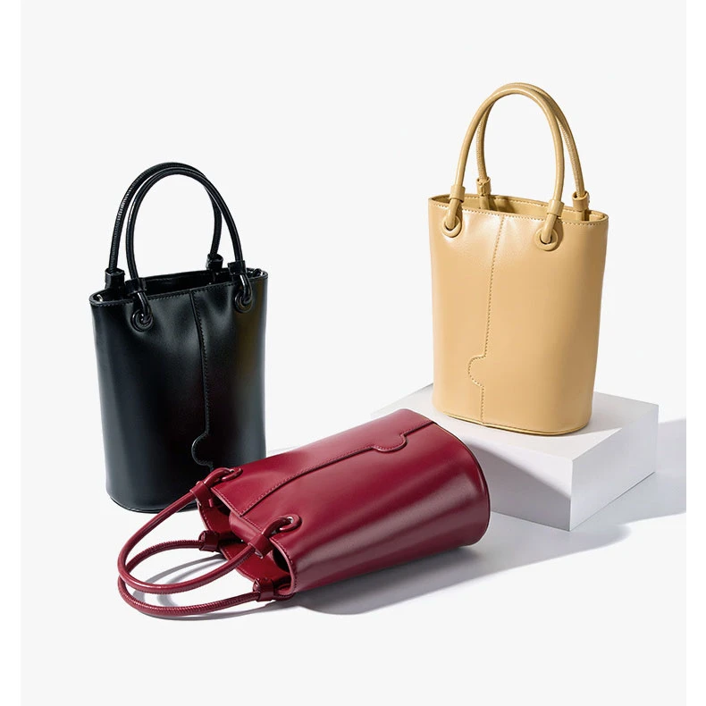 2024 Fashion Genuine Cow Leather Classic Handbags For Women Female Vintage Designer Inspired Bucket Crossbody Bags Bulk