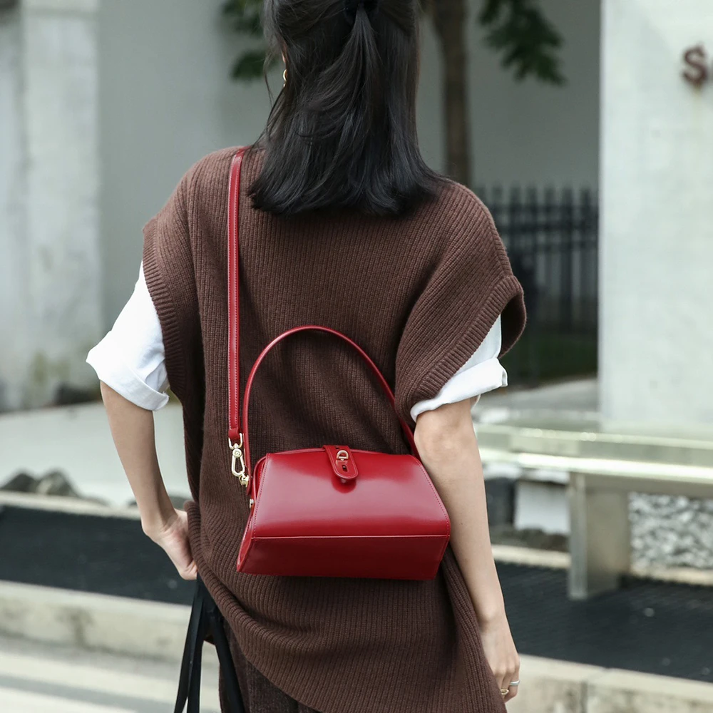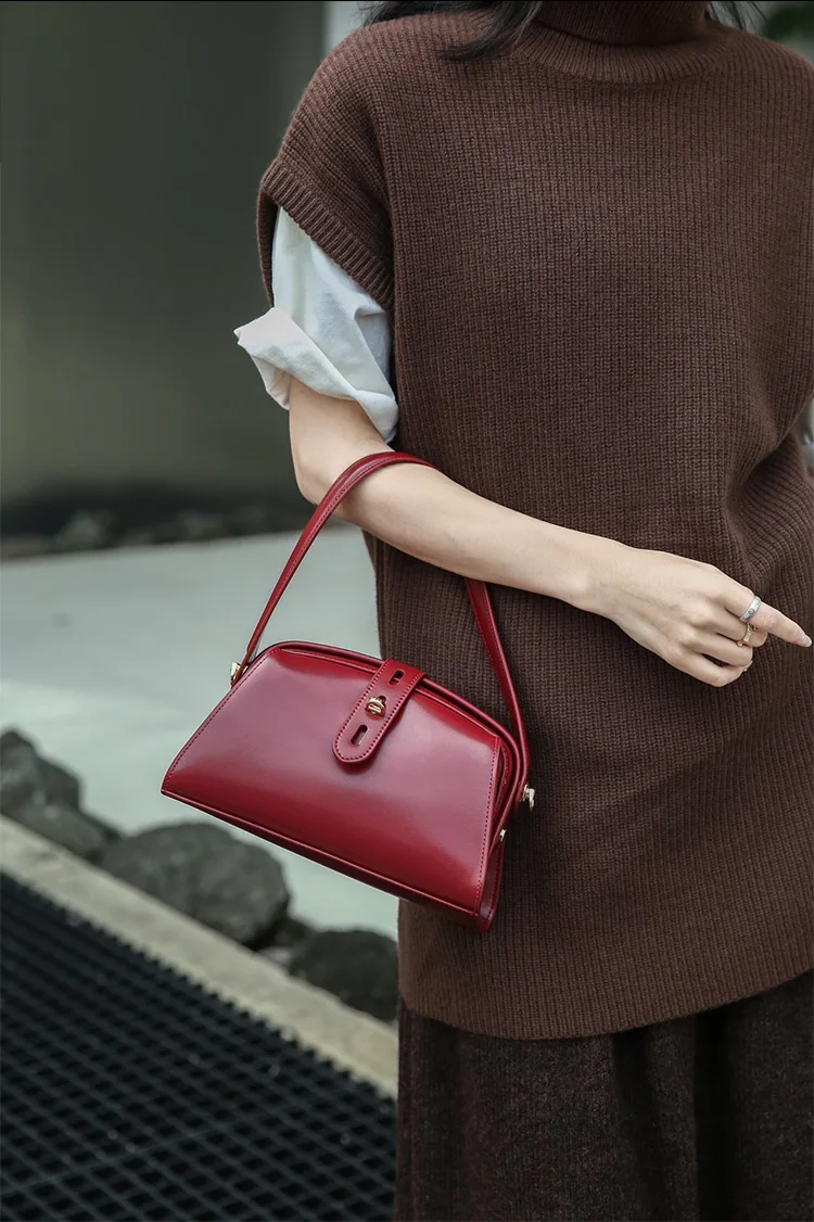 China Manufacture Flag Open Ladies Underarm Bags Genuine Leather Single Shoulder Boston Luxury Hand Bag