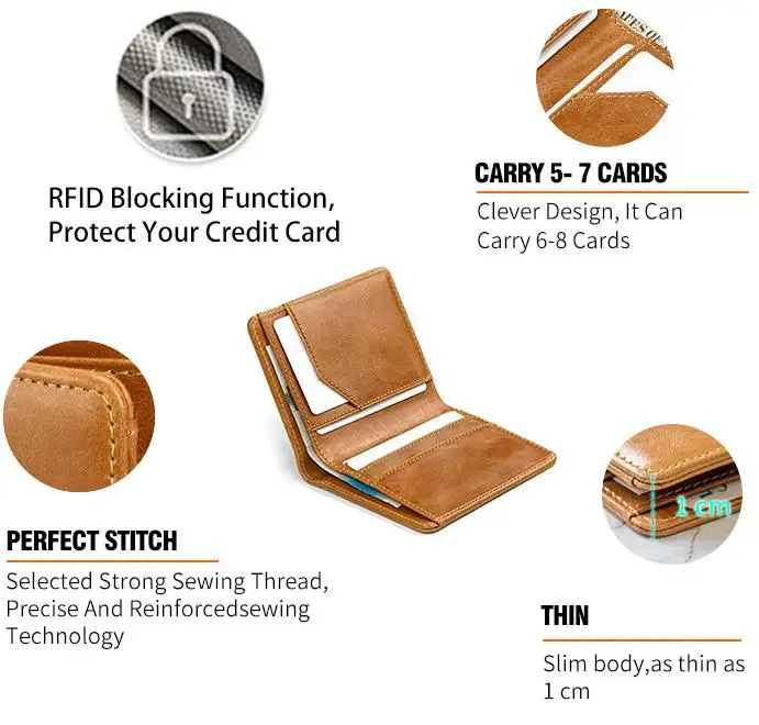 Product name | factory Hot Sale Minimalist RFID Blocking Custom Bifold Slim Genuine Leather Mens Wallet |