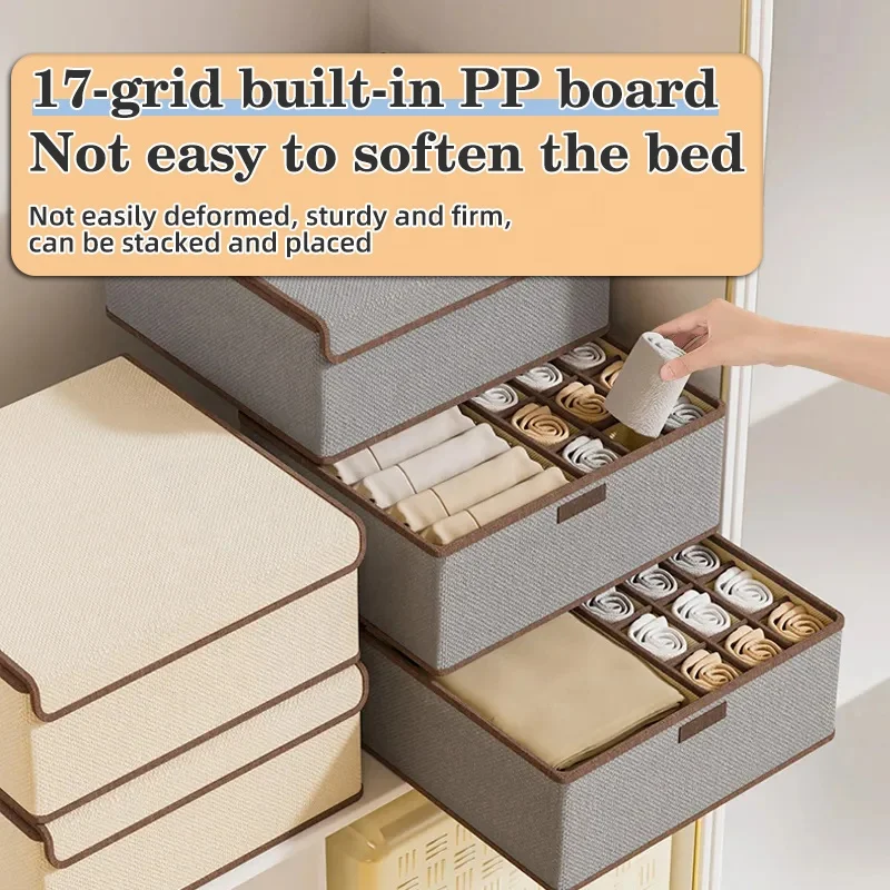 Foldable Drawer Socks Organizer for Jeans Clothes Upgraded Multifunction Fabric Storage Box with Lid Underwear Organizer Box