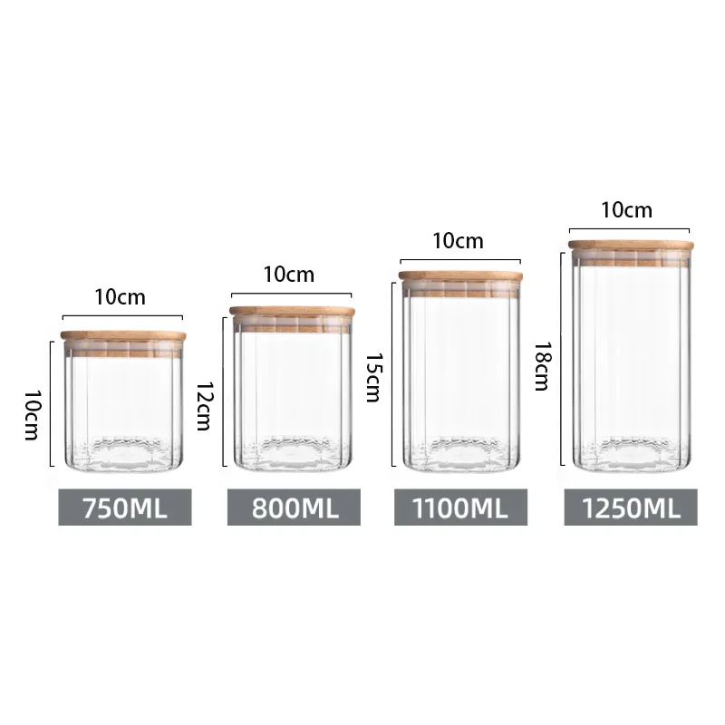 Wholesale Prices diameter 10cm 750ml -2.3L capacity Striped Square Food Storage glass canister with BAMBOO Lid