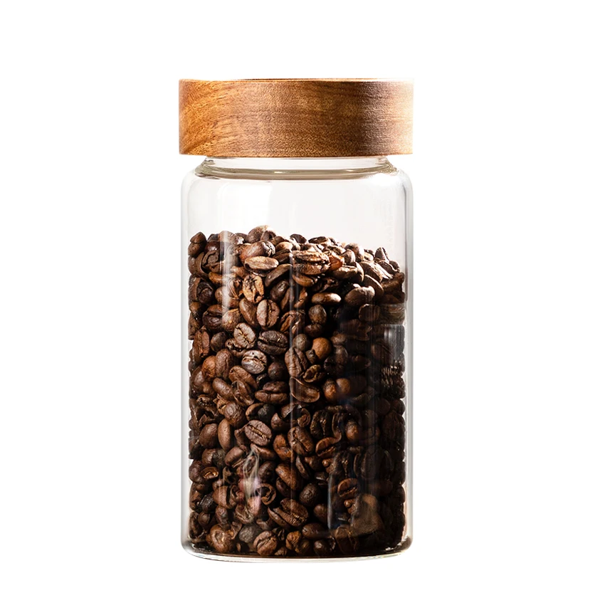Lead-free Premium threaded wide mouth diameter 8cm 10cm Borosilicate Glass canister kitchen storage jar with Acacia lid