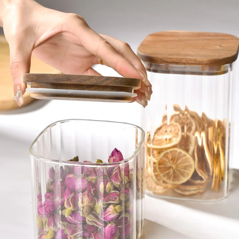 Multi-specification capacity household food and spice storage high borosilicate airtight mason jar with wooden lid