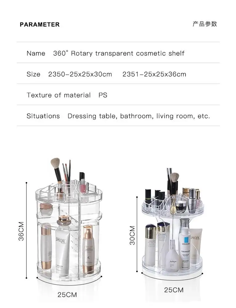 Acrylic 360 Degree Adjustable Rotating Makeup Organizer