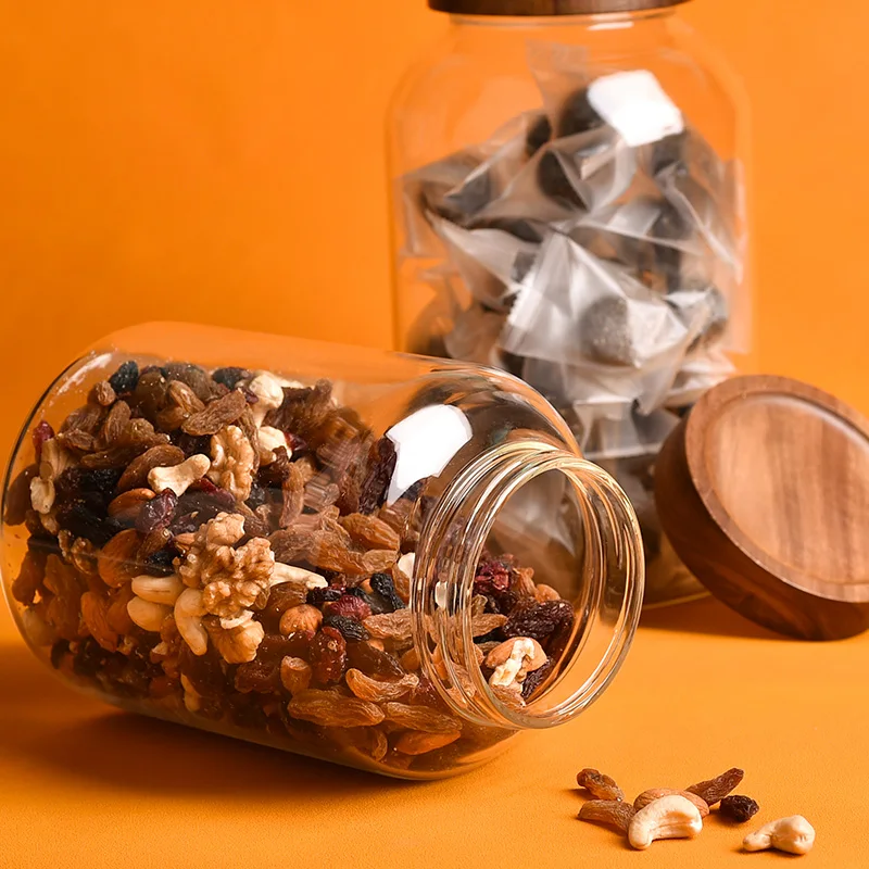 High capacity Round kitchen spice storage glass jar heat resistant Borosilicate Glass Jar With Bamboo luxurious acacia wood Lid