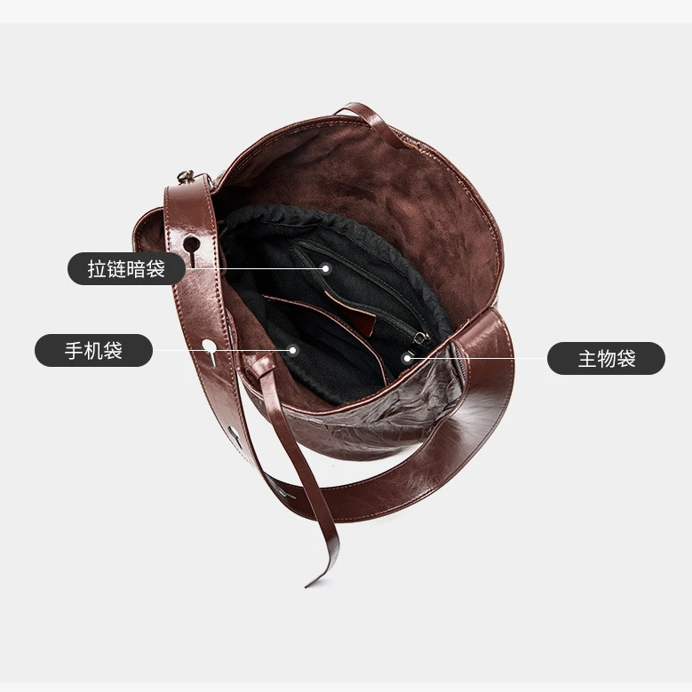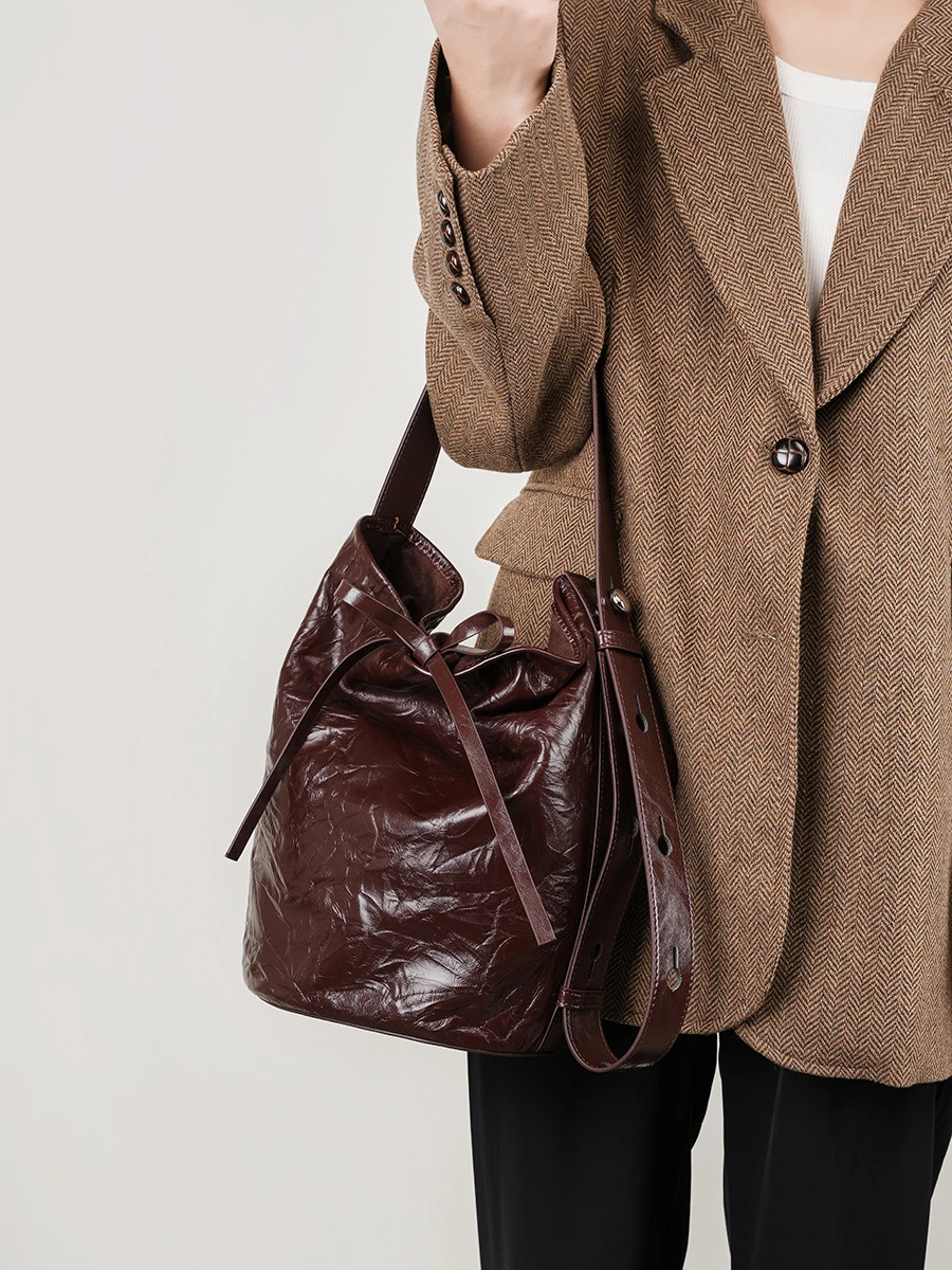 Luxury Women'S New Ladies Hand Tote Bags Bucket Genuine Leather Shoulder Crossbody Bags Underarm Women 2024 Large Capacity