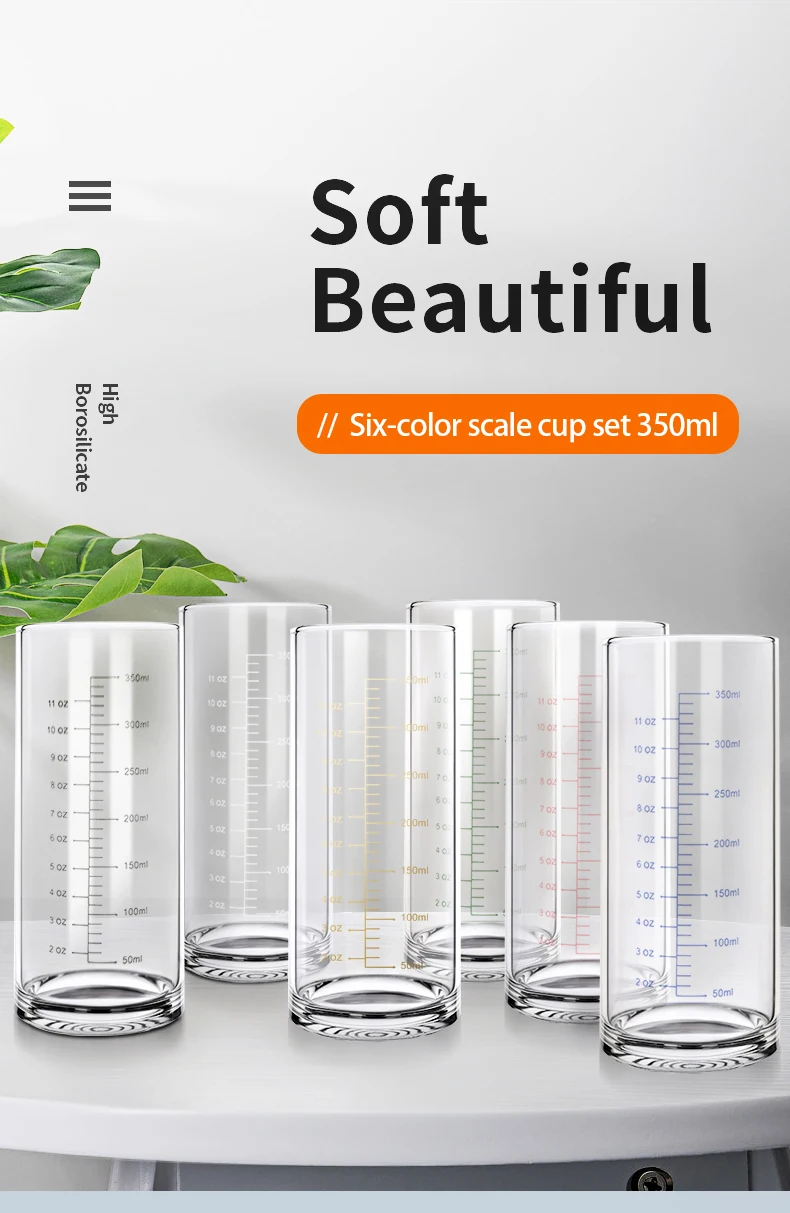 Graduated Borosilicate Glass Cup Portable Tea Beverage Glasses Baking Measuring Cup Home Kitchen Bar 350ML Glass Measuring Cup