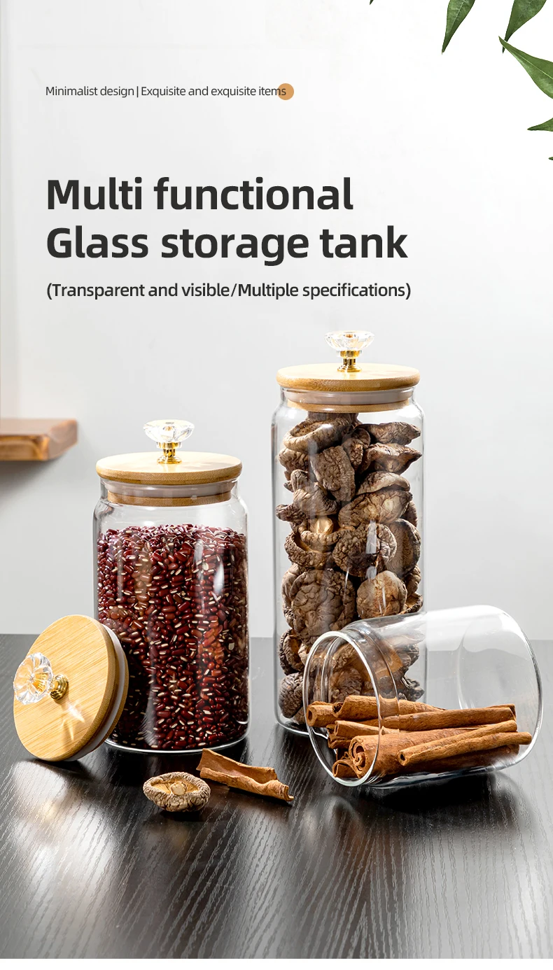 Home Kitchen Tea Herbs Coffee Flour Herbs Grains Food Cereal Storage Containers With Bamboo lid