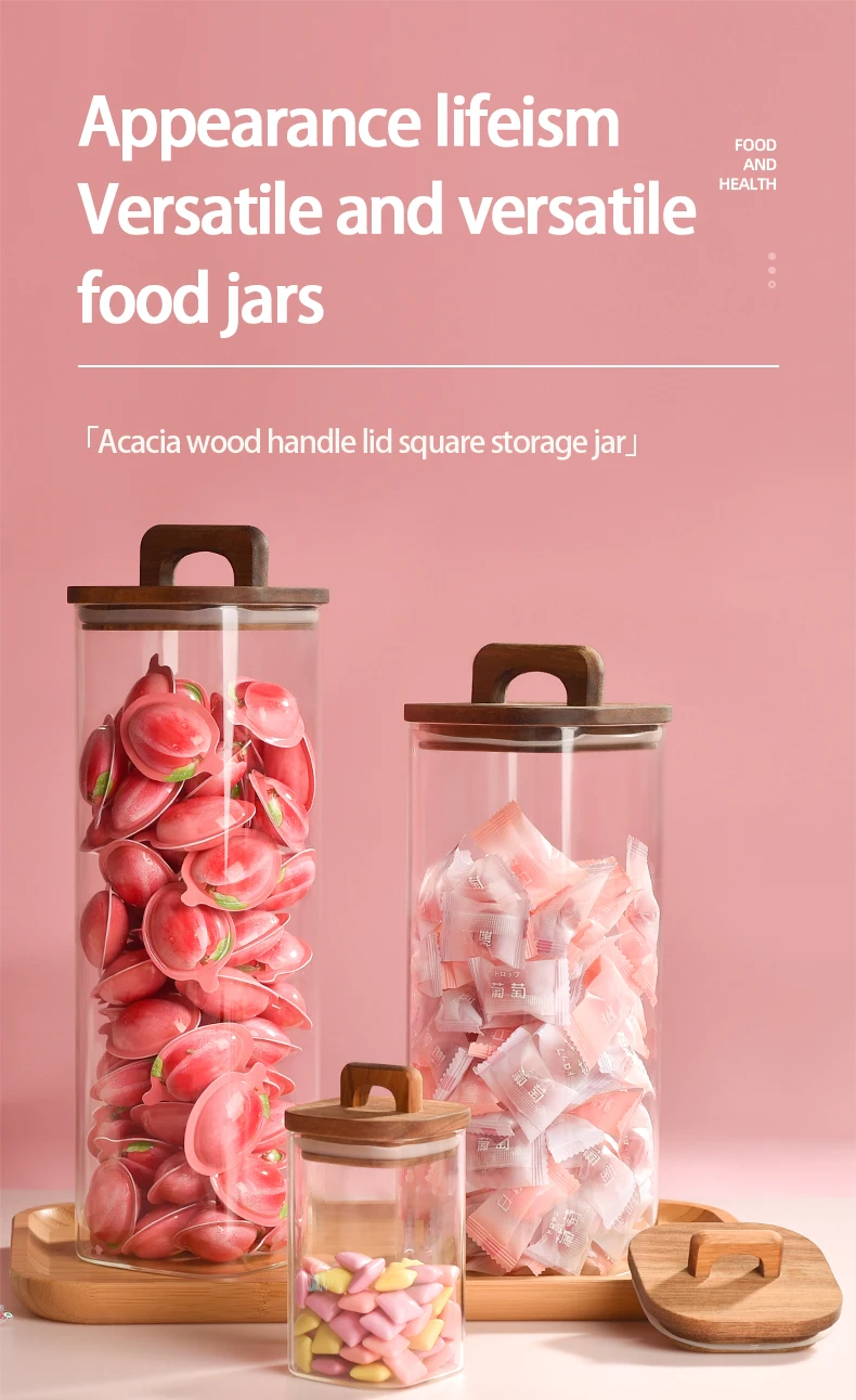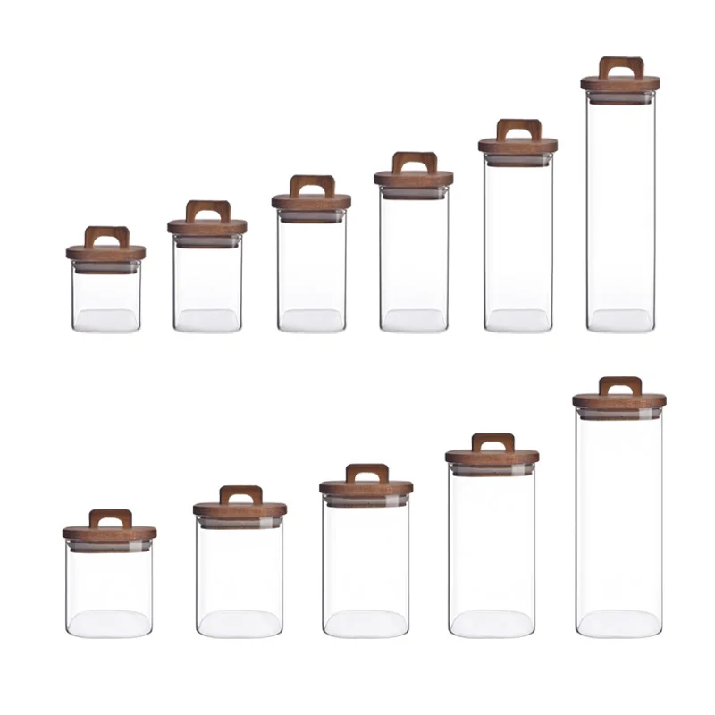 Custom glass food storage bottle for kitchen High Borosilicate airtight kitchen glass Food Storage Jars With wood lid