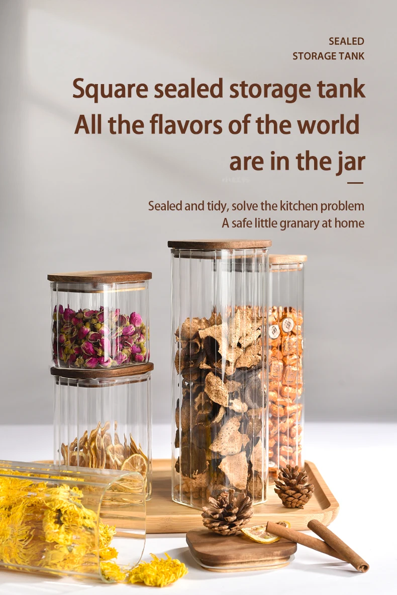 Kitchen Airtight Honey Cookies Spice Spaghetti Nuts Screw high borosilicate glass storage bottles & jars with acacia wood lid
