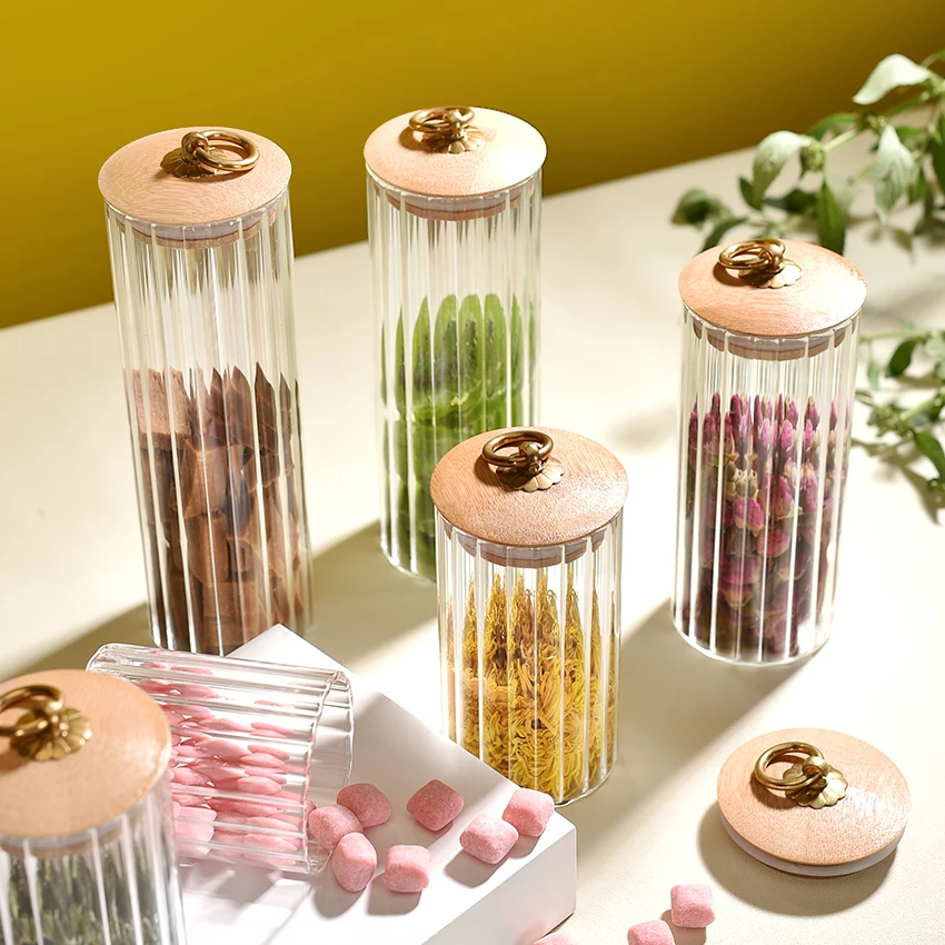 Custom Kitchen Accessories Home Storage Jars Borosilicate Glass Food Container Spice honey Oats Jar WIth Pull Tab Bamboo Lid