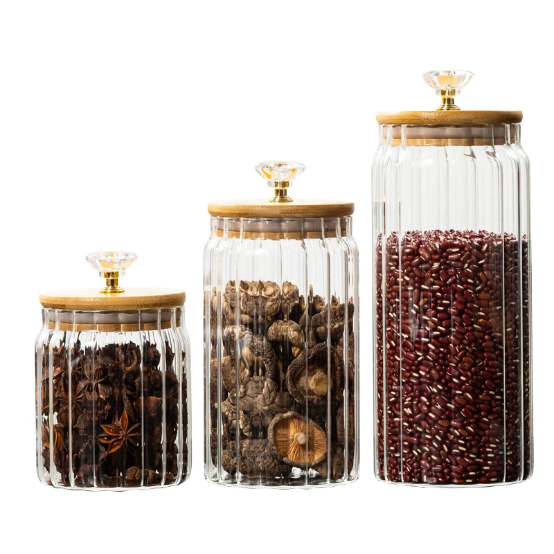 Tall Borosilicate Glass Airtight bamboo Lid Storage Jar Pasta Rice Candy Food Canister