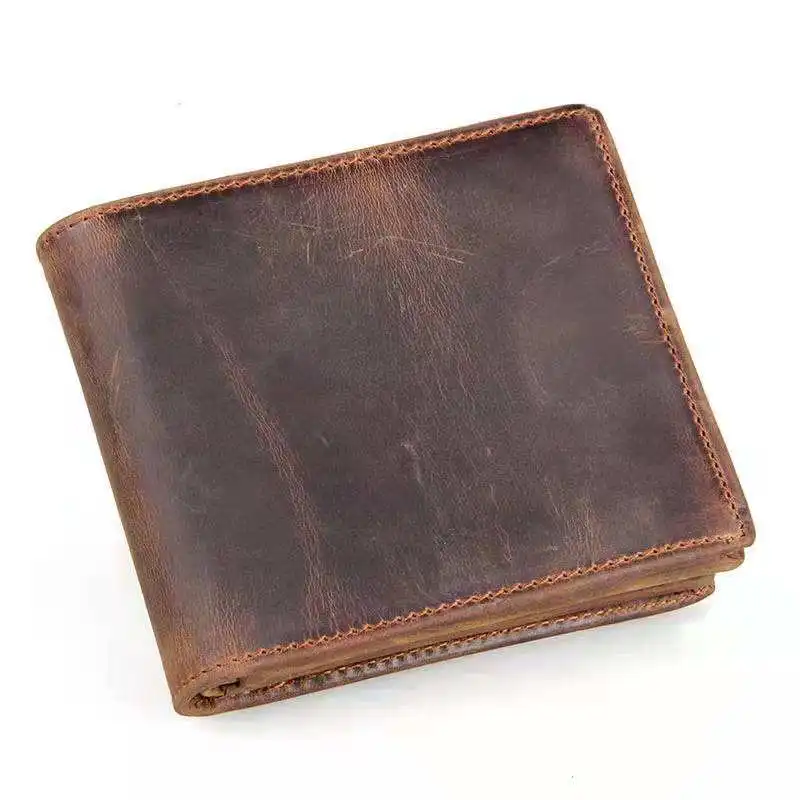 Crazy Horse Leather short Men Wallet genuine Leather Man Purse