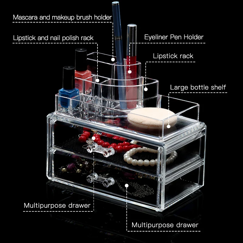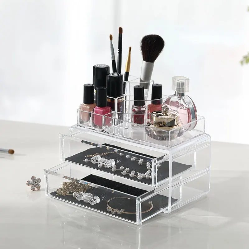 Luxury clear jewelry makeup organizer plastic bathroom storage box