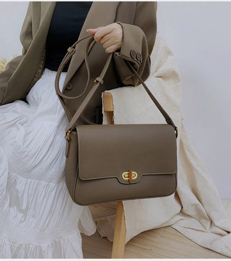 Top Layer Cowhide Leather Vintage Square Shoulder Bags Niche Designer Fashion Women Messenger Crossbody Bags