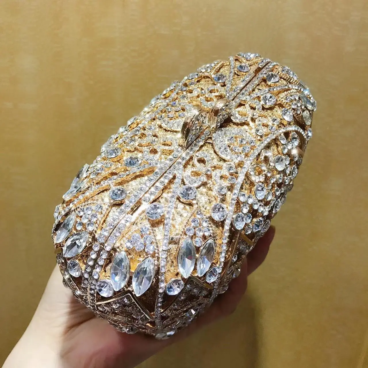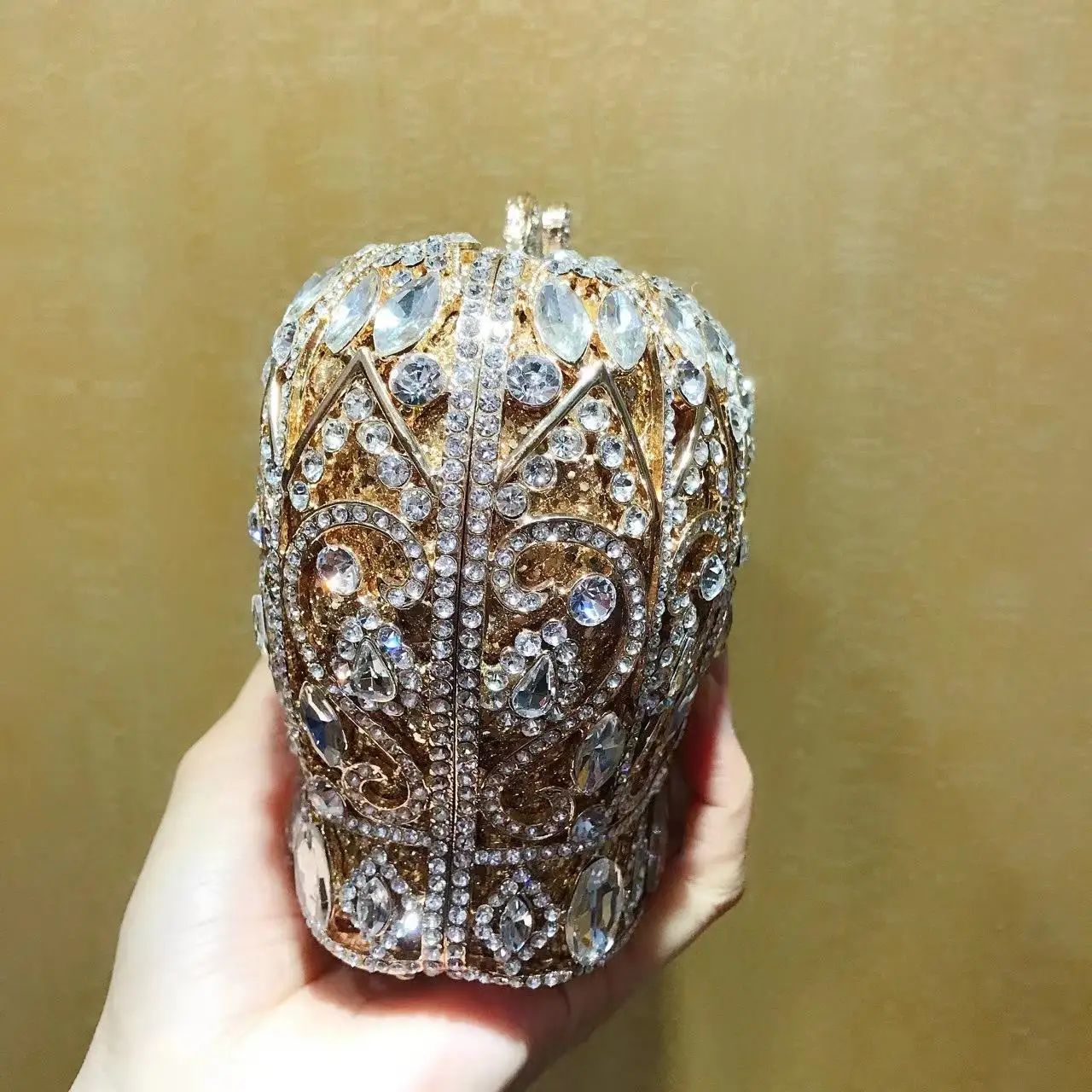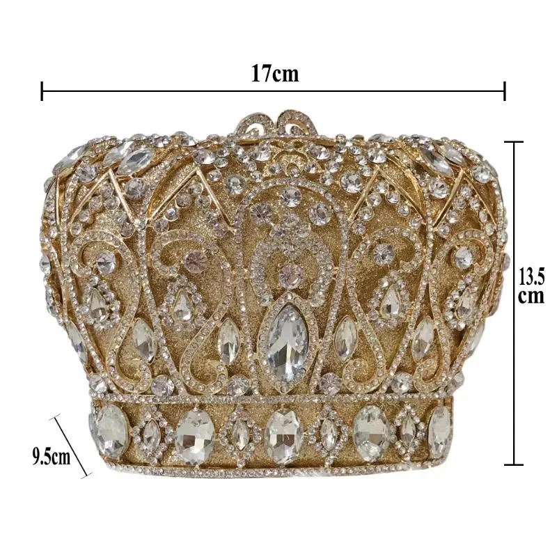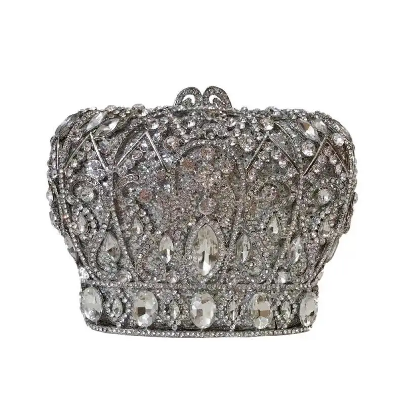 Hot selling rhinestone dinner bag with a crown shaped pointed bottom hollowed out diamond handbag chain grab women's bag
