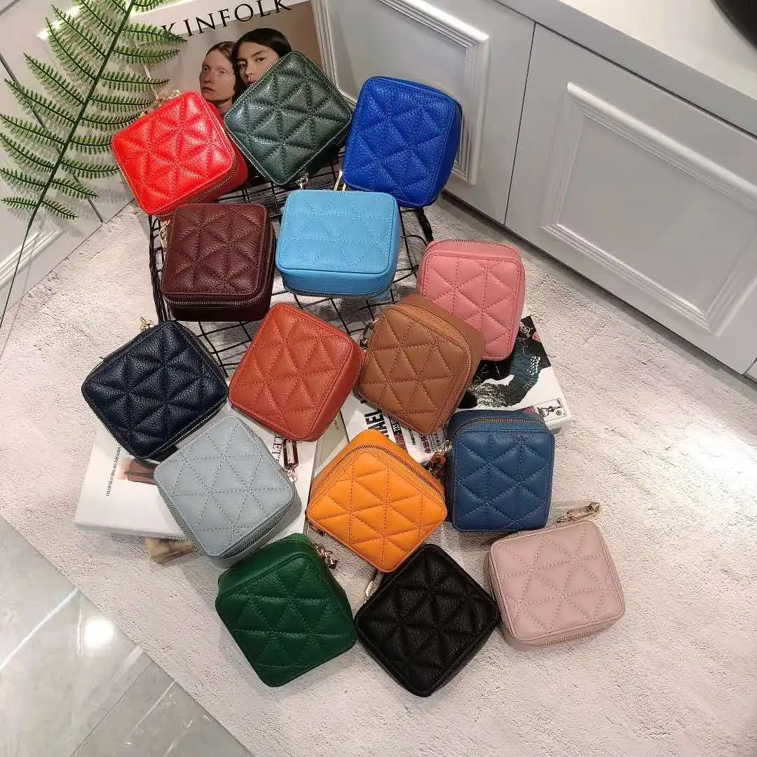 *Style | Mini cosmetic bag diamond trellis pattern genuine leather travel lipstick bag organizer cosmetic case | |