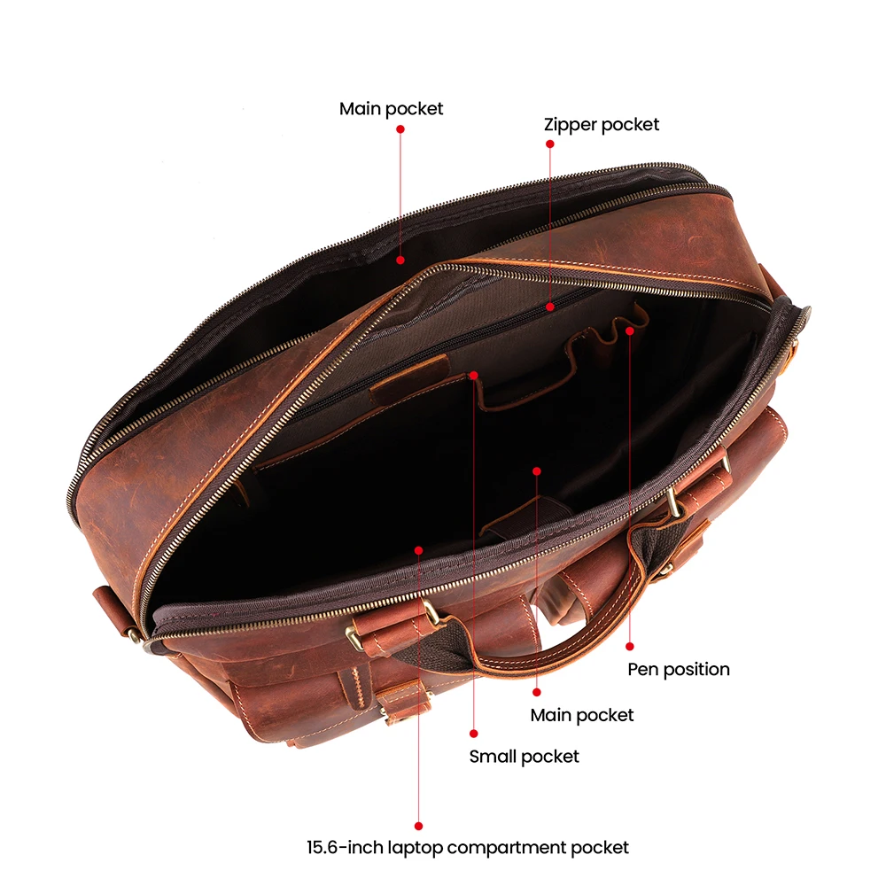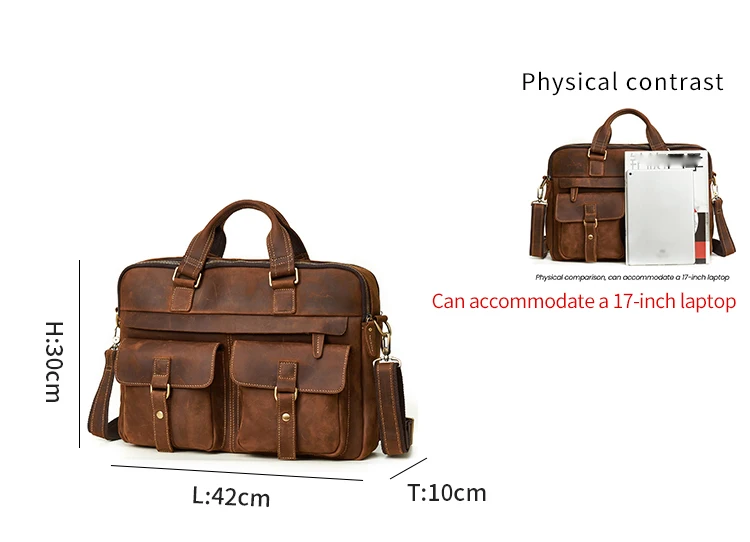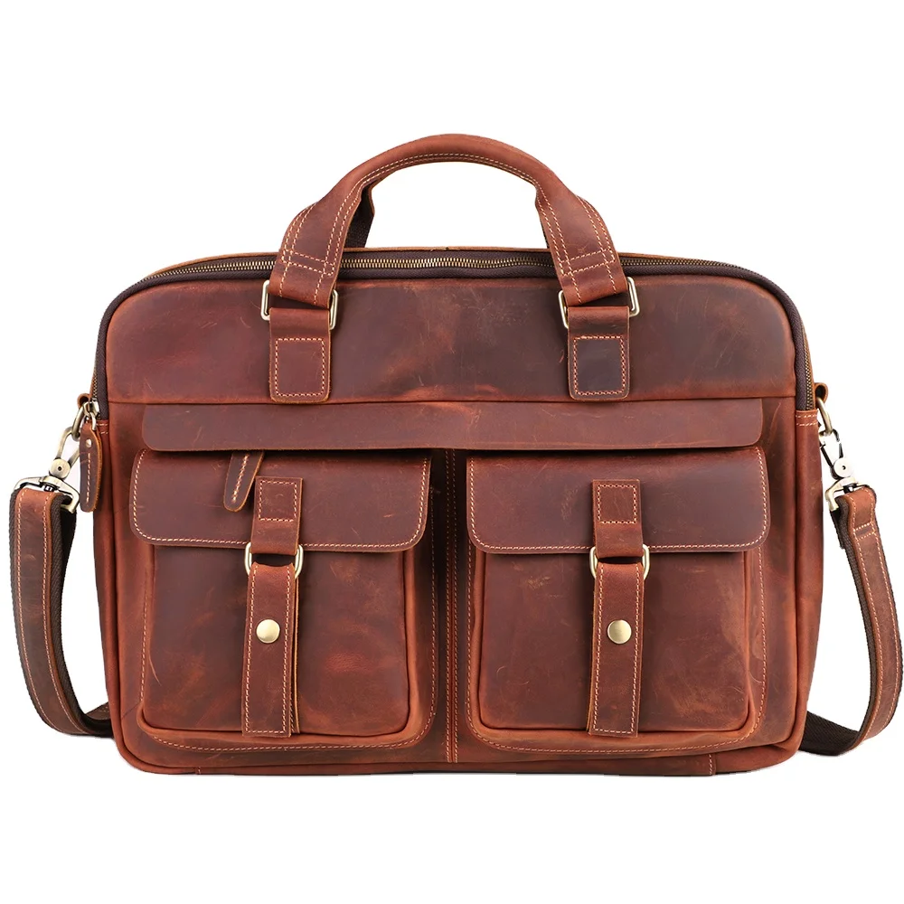 Designer Handbags Briefcases Business Premium Crazy Horse Leather 15.6 Inch Laptop Bags For Men
