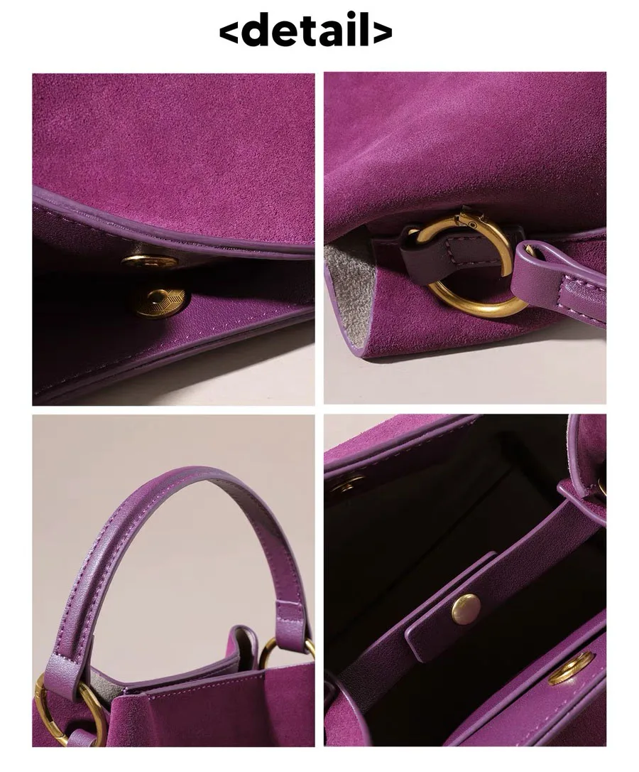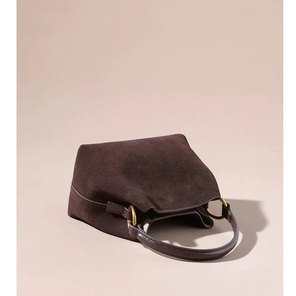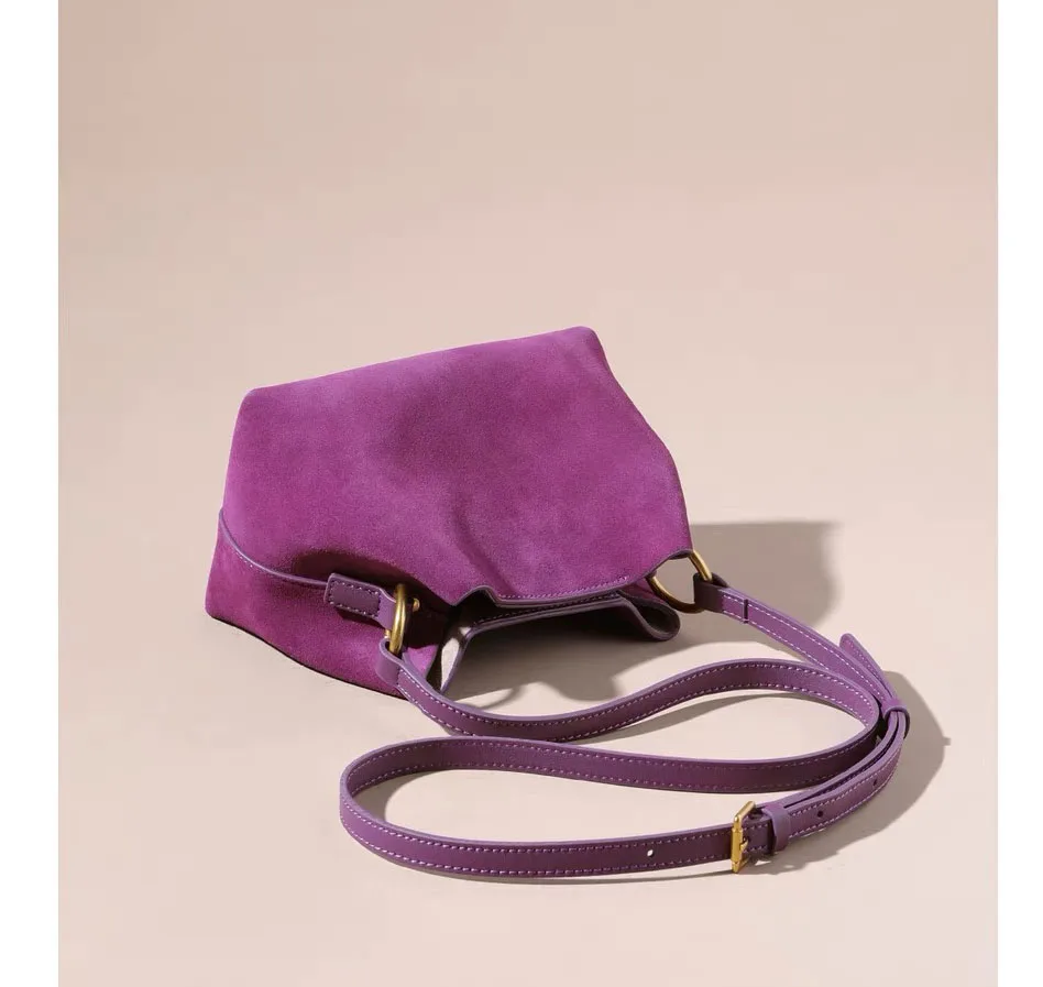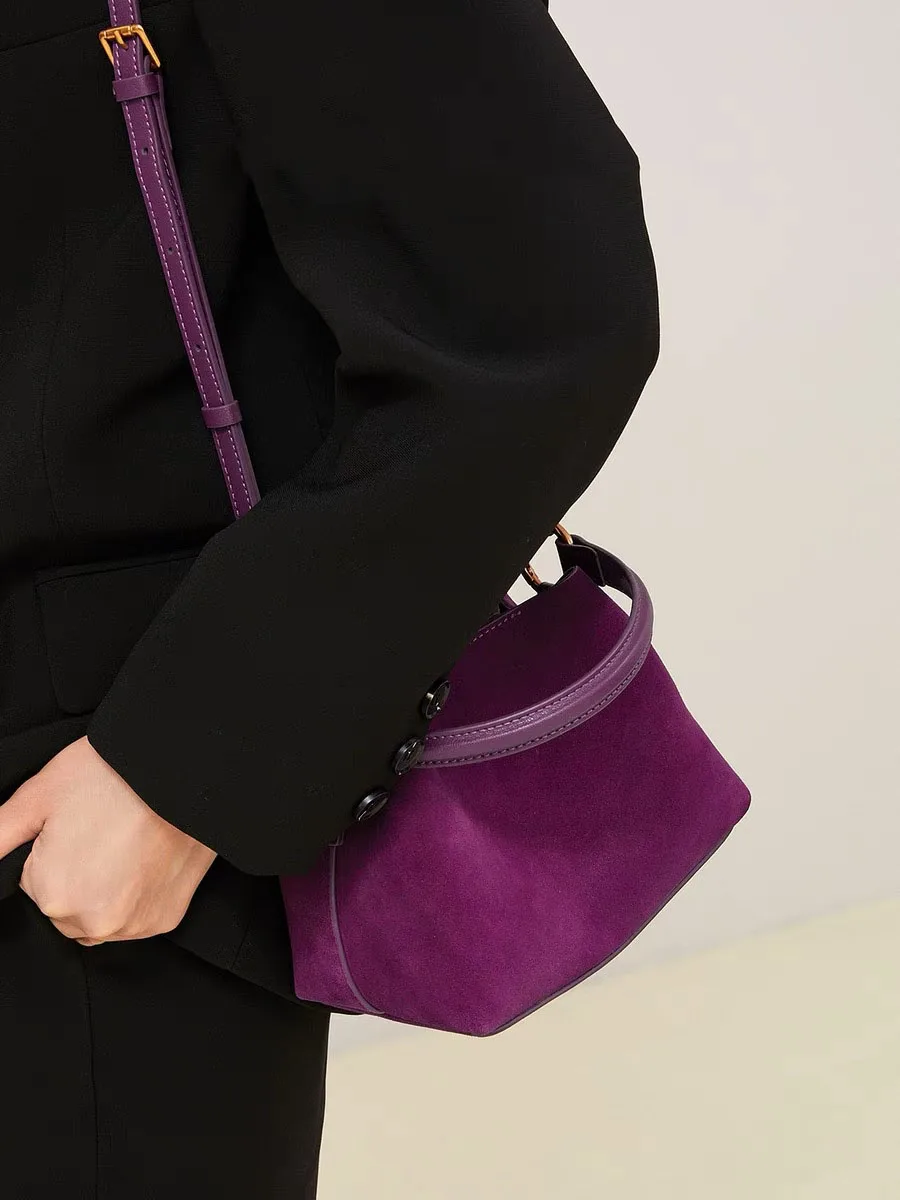 NEW 2024 Winter Bucket Shoulder handbags suede Cow Leather Handbags for Ladies Luxury Designer handbag