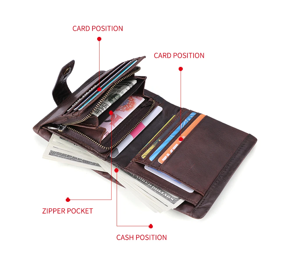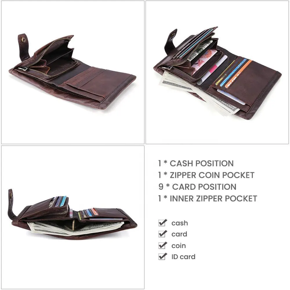 Product name | Rfid 3 Fold Genuine Cow Leather Wallet For Men With Coin Pocket |