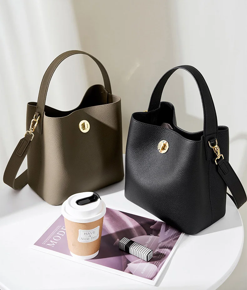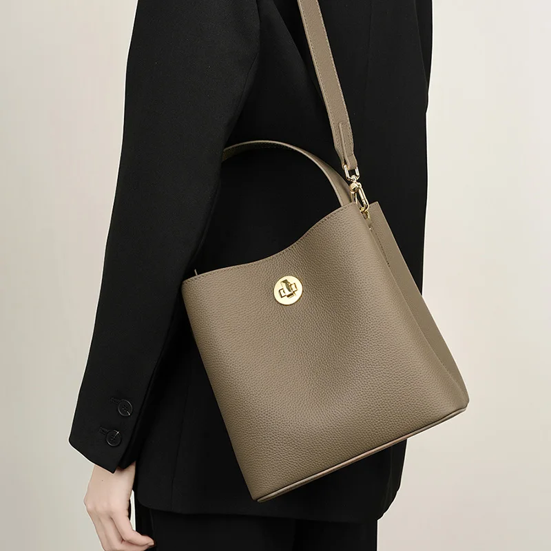 New Design Custom OEM ODM Lady Style Lager Capacity Cow Skin Leather Crossbody Shoulder Female Women Leather Bucket Bag