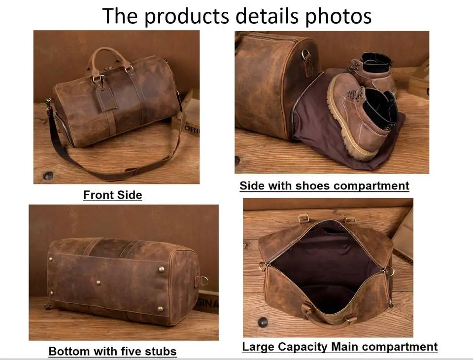 Product name | Vintage Crazy Horse Leather Duffle Weekend Duffel Bag |