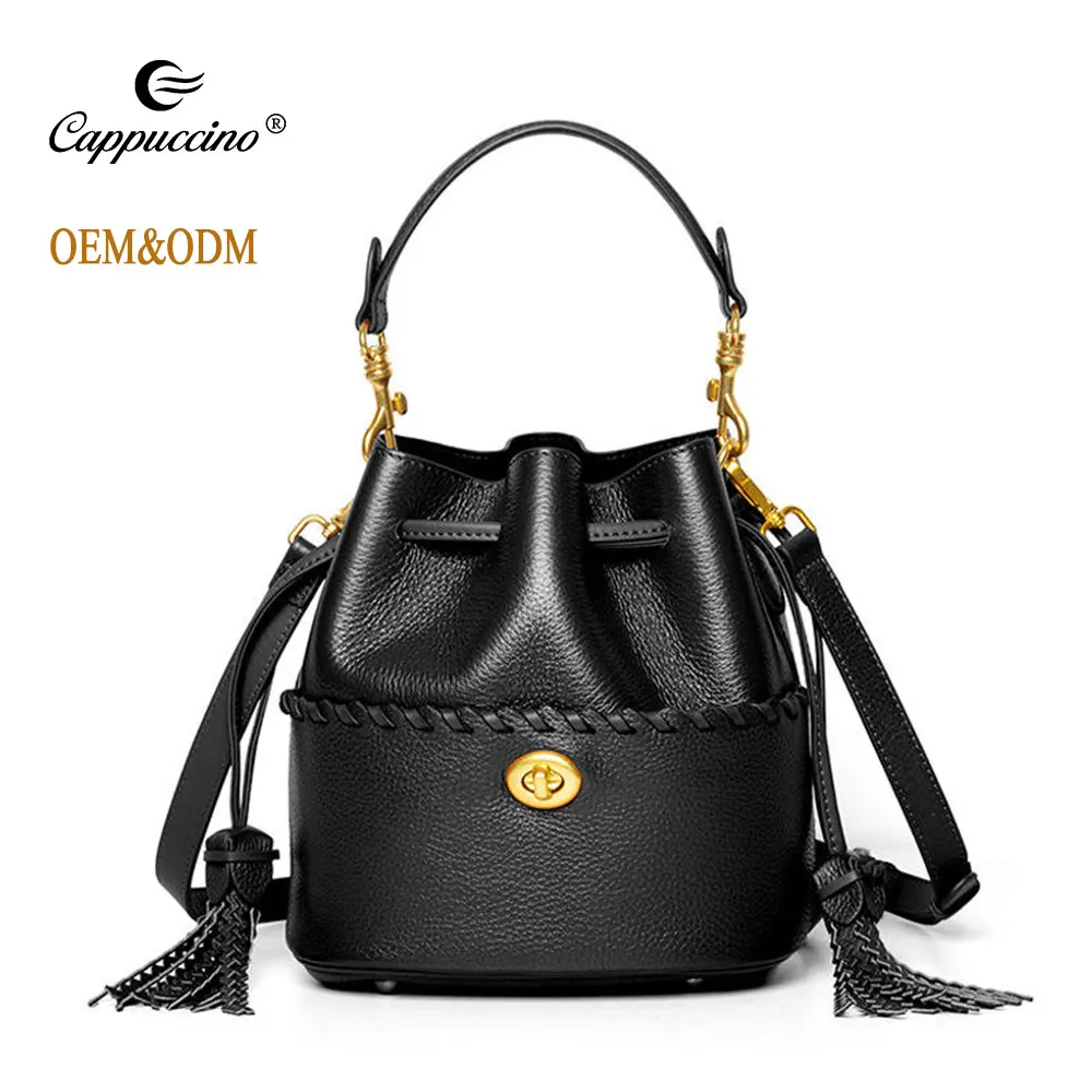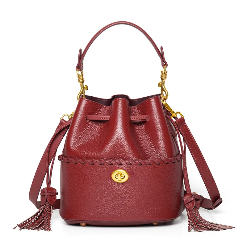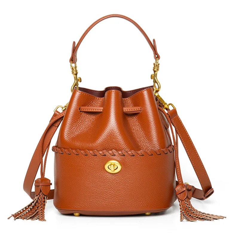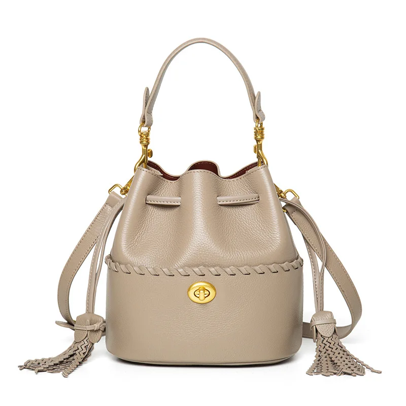 Custom handbag Bucket Bag Casual fashion drawstring design ladies crossbody shoulder bag genuine leather bucket bags for women