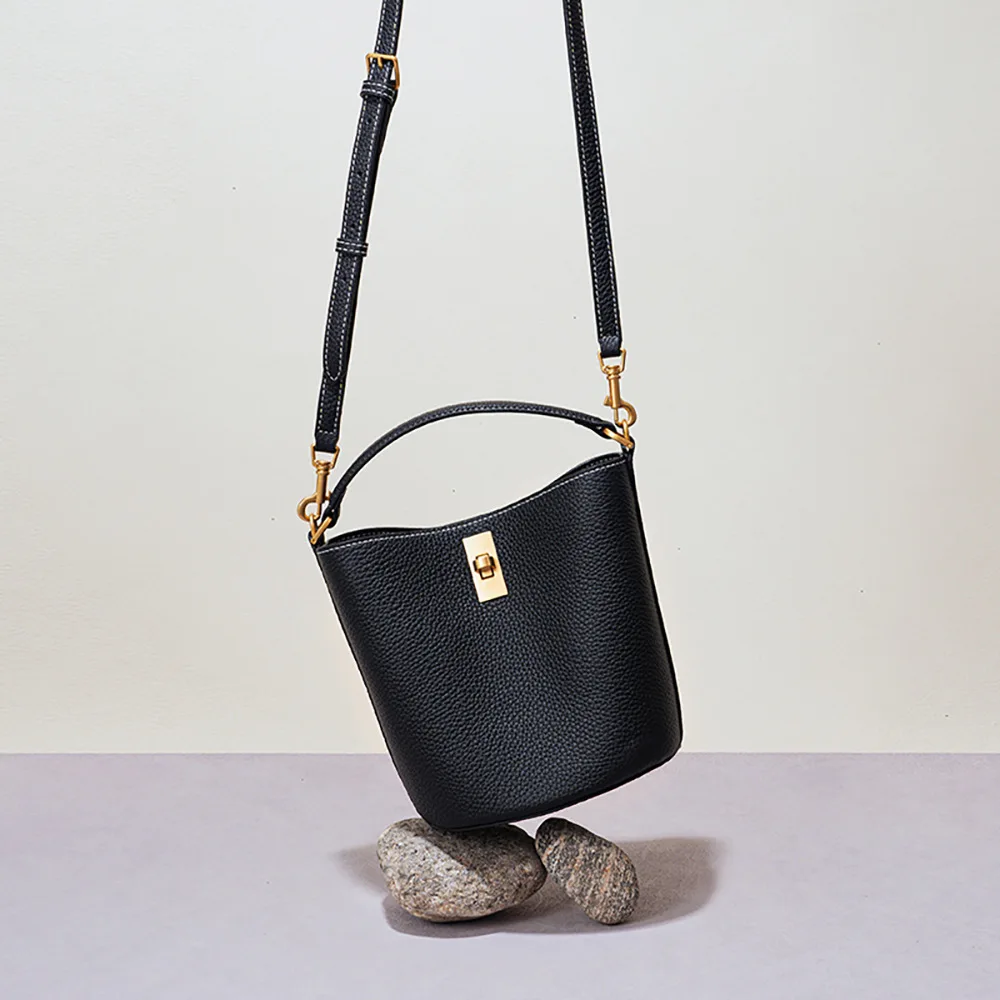 Fashion Genuine Leather Women's Cross-body Portable Bucket Bags Large Capacity Vintage Soft Purses And Handbags