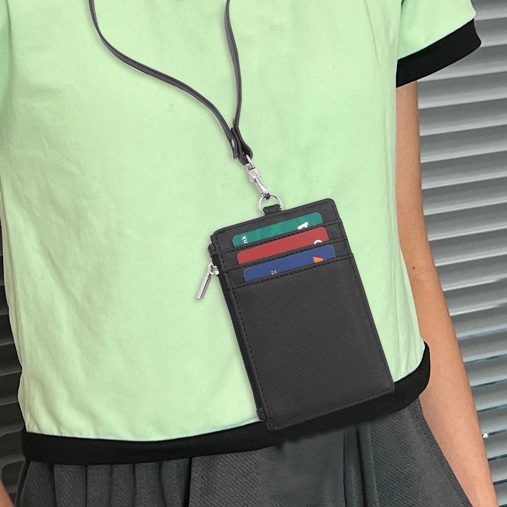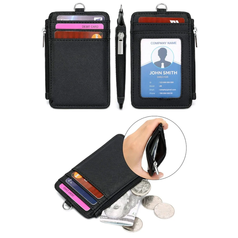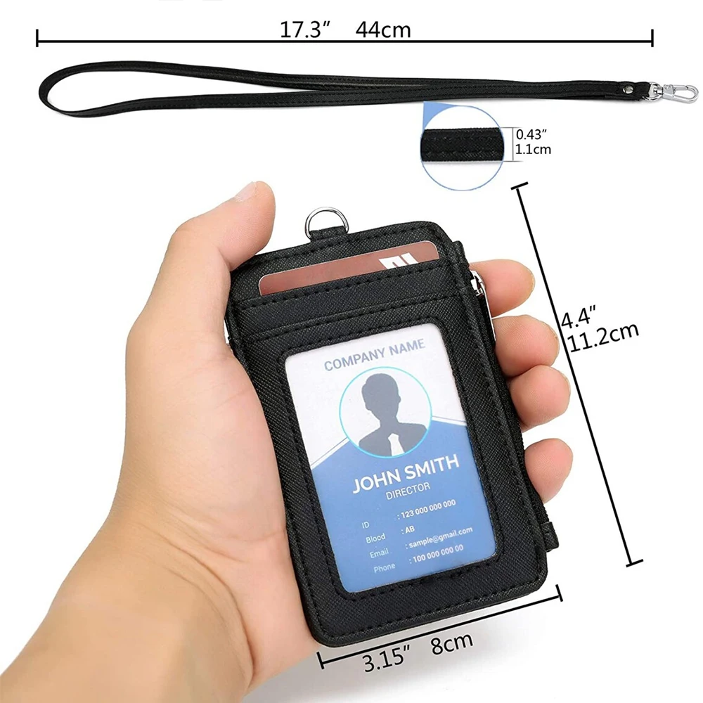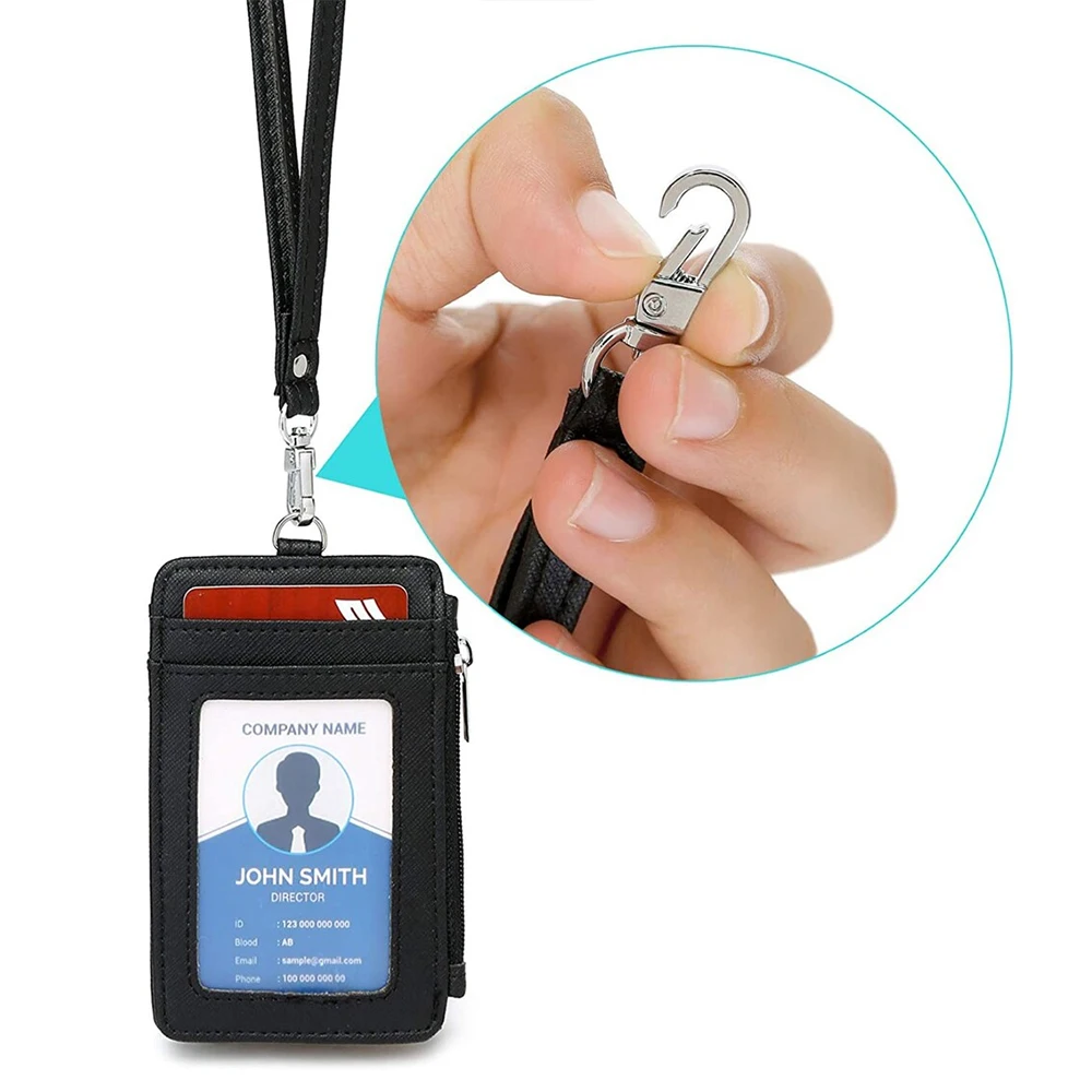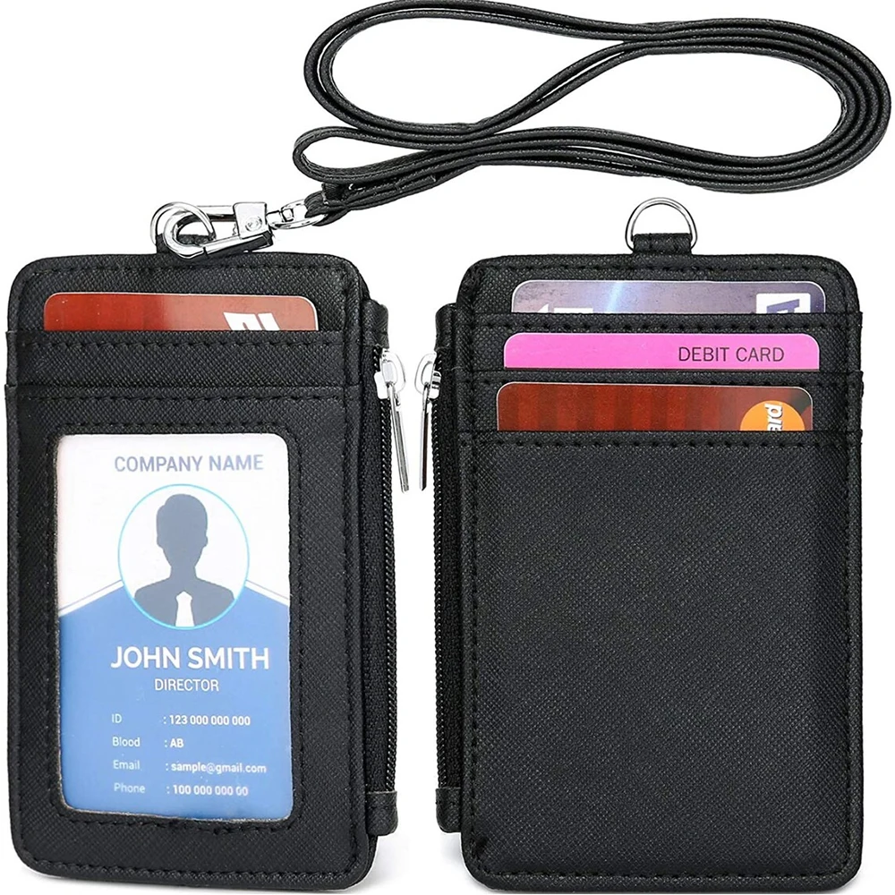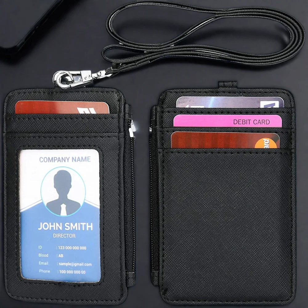 Factory Direct Custom Leather Credit Card Holder Business Lanyard Zipper ID Badge s