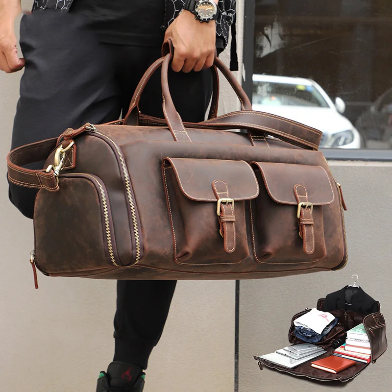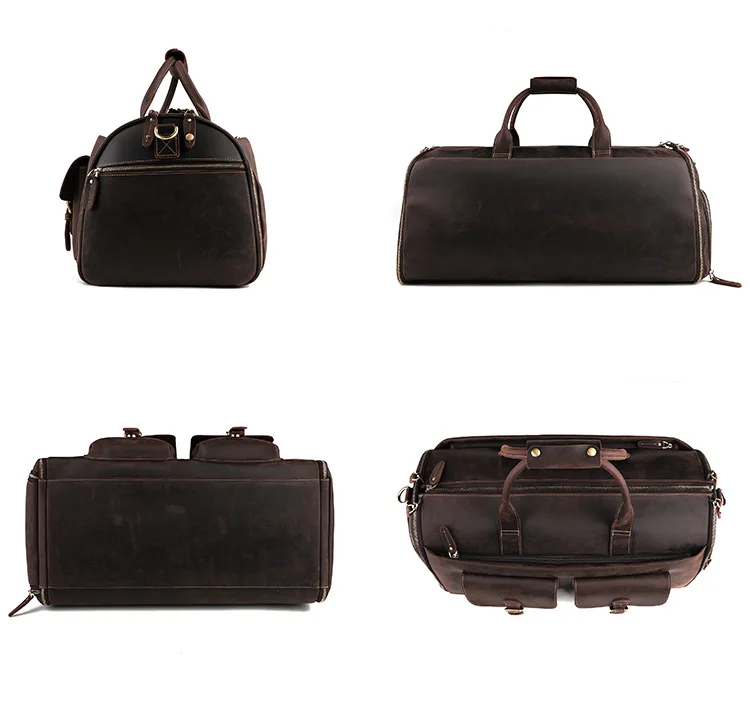 100% leather cowhide dry-wet separation fitness garment duffel bag hand luggage men's genuine real travel